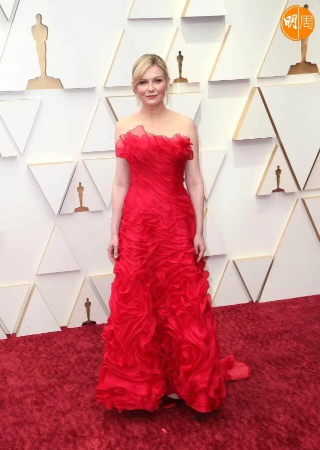 今屆奧斯卡頒獎典禮其中一項關注元素是俄烏局勢,一眾荷李活影星在典禮前的紅地毯上以襟章袋巾絲帶等服飾表達立場。衣著選色方面,鮮明的紅色是主色,姬絲汀鄧絲及珍妮花嘉納等女星均一身紅裝在紅毯上爭艷,「尚氣」男星劉思慕亦紅得起!
