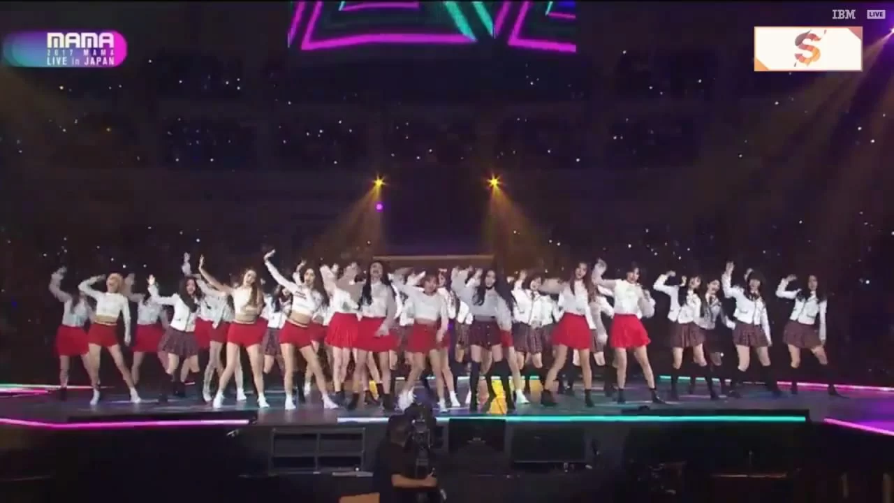 screen-shot-2017-11-30-at-1-33-15-pm1_meitu_1特別表演由I.O.I領軍,五位成員各自的組合也踏上舞台,加上由另一選秀節目《偶像學校》出道的新女團fromis_9,舞台上足足有近三十人一同表演,場面震撼。五位I.O.I成員站在前排位置,值得一提的是,中心位置再度由磪有情擔任。有情於節目《Produce101》首播前的公開演出時已擔當中心位置,這次再由她站在中心,別有一番味道,各人出色的舞台魅力亦完美地呈現。跳到中段,升降台更帶來日本國民女團AKB48。她們穿著高踏鞋,跟二十多位韓國女團成員一同演出。及後AKB48更表演名曲〈Heavy Rotation〉、〈Fortune Cookie〉等,日韓女團互相表演對方的經典歌,這樣的合作實屬難得!對於I.O.I的粉絲而言,雖然這次演出只得其中五位成員參與,但能夠看見她們一同站上舞台,重新以I.O.I的身份跟大家見面,已經非常珍貴。畢竟距離五年之約依然有相當長的時間,成員們珍惜短暫的相聚之餘,也安撫一下歌迷們思念偶像的心。