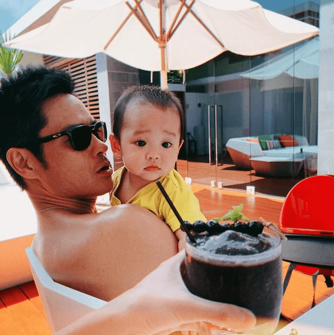 鄭嘉穎近日偕同老婆陳凱琳(Grace),以及7個月大的囝囝鄭承悅(Rafael)到布吉度假,一家三口盡享天倫樂。