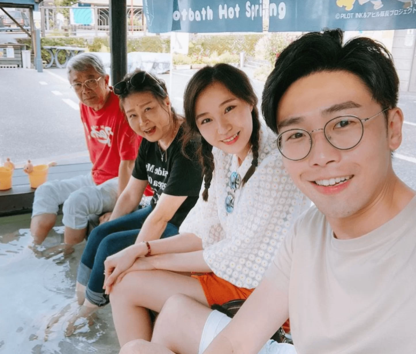 陸浩明(6號)日前與父母飛抵日本旅行,而深得陸爸爸和陸媽媽喜愛的6號女友陳詩欣(Ayan)亦有隨行,四人首先到九州的高千穗牧場參觀,享受餵羊仔的樂趣,6號其後又載大家去遊覽西大山駅名勝、到指宿市品嘗流水麵,以及去溫泉歎足湯,一星期的旅程十分豐富。