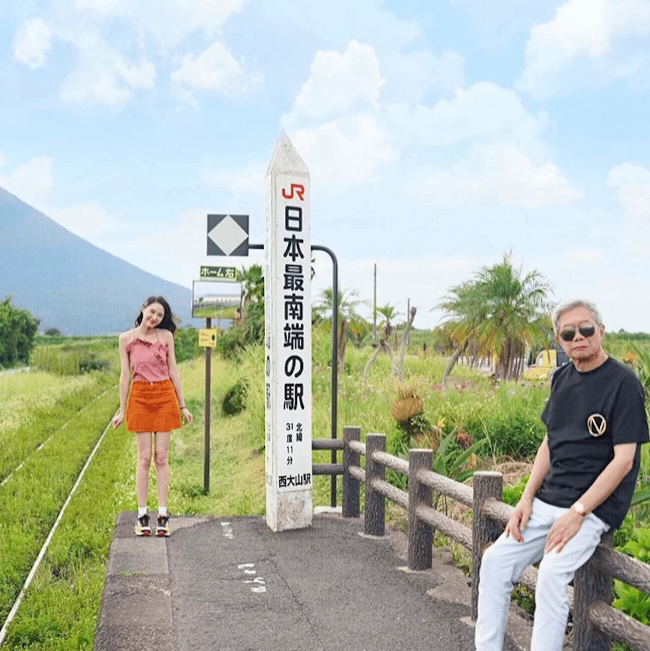 昨日(7日)6號在社交網分享旅行照,並寫道:「Oh 阿爸呀,千里迢迢去全到日本最南端嘅JR站,諗住幫女友影返幅靚相之際,我老豆突然間亂入仲坐低咗,完美入鏡⋯⋯#阿媽點解唔睇住阿爸 #後面勁多人等影相」相片中見Ayan站在路牌左側,而陸爸爸就坐在右邊的欄杆上,並露出酷爆表情,簡直配合得天衣無縫,連Ayan亦笑言:「但毫無違和感。」