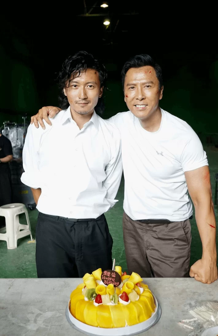 甄子丹進入片場時,劇組人員為「最強壽星」唱生日歌,子丹全程表現興奮,更搞笑地跟着大家唱:「Happy Birthday to me ! 」唱畢後他更擁抱身旁的導演陳木勝,更不忘詢問拍檔謝霆鋒在哪。鏡頭前拳來拳往,鏡頭後就老友鬼鬼,與霆鋒友情相擁時,導演更搞笑為兩人配音:「打多你一搥!」看到各位手足冒着酷暑拍攝,霆鋒適時地「萬歲」請食糖水,冰涼的甜品可說是為生日會「助興」。
