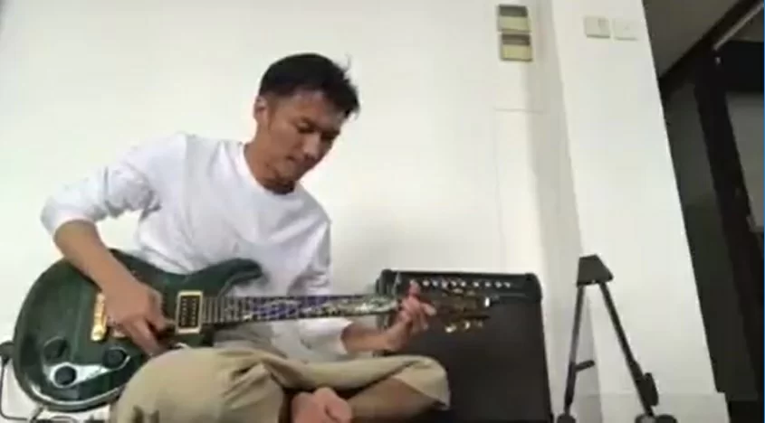 謝霆鋒用結他彈經典金曲《潛龍勿用》(Facebook圖片)