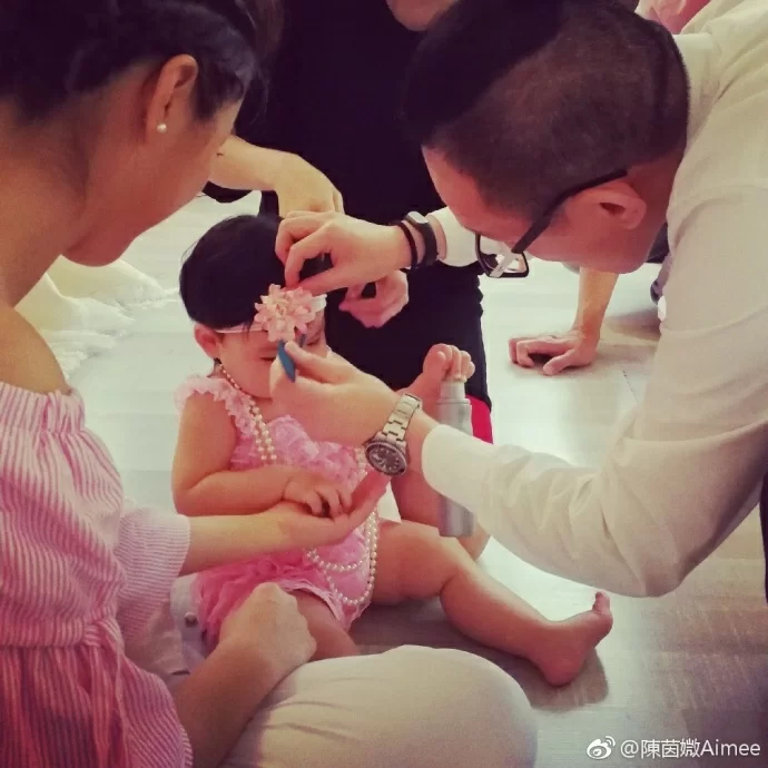 陳豪輕輕錫向囡囡的頭,相當有愛!(微博照片)