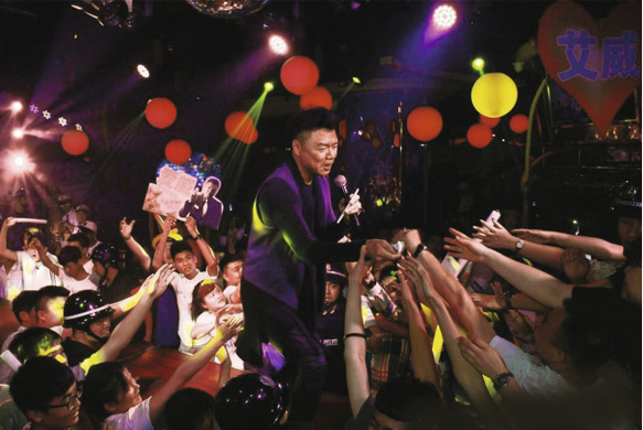 艾威在內地有一定知名度,每次登台都獲粉絲熱烈拍掌歡迎。由於每次演出場地不同,他帶着一套歌衫,四首金曲已走天涯,將酒吧騷氣氛炒熱。