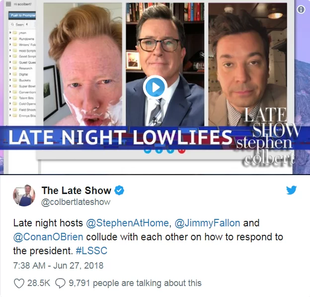 美嘴Jimmy Fallon一向不屑特朗普的作風,2016年特朗普競逐總統時曾在其節目亮相,並願意讓Jimmy「摷亂」其招牌髮型,但此事成為他們後來對罵的話題之一。近日,育有兩個孩子的Jimmy不斷在Twitter及節目上炮轟特朗普做法不人道,特朗普則反斥對方毫 無才華。近日Jimmy與同樣被特朗普指罵的名嘴Stephen Colbert及Conan O’Brien聯手度橋,拍片放上Twitter「教」大家如何回應特朗普的無理指罵,又揚言三人會在節目上繼續抨擊特朗普。Jimmy更用特朗普名義向一間反對「零容忍移民政策」的慈善機構捐款,用行動嘲諷對方。