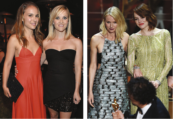 聯盟得一眾影后級人馬(左起)妮坦莉寶雯、曾遭性侵的麗絲韋花絲潘、娜奧美屈絲與愛瑪史東等支持。