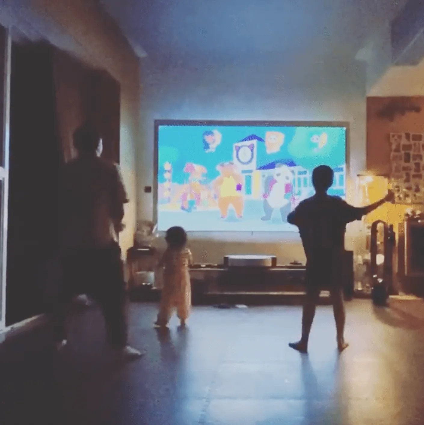 昨日(4日)阿聰在Ig貼出與囝囝張瞻(James)和Kakaball一起玩跳舞Game的片段,並寫道:「依家啲game,放電真係一流,放家長果啲喎係⋯⋯」片中三人齊齊舞動身體,Kakaball亦落力跟上父兄的動作,十分可愛!