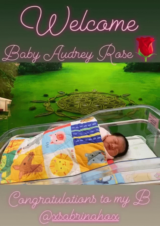 相片中的B女睡夢正甜,雖然閉着眼睛,但從她長長的眼形看,應該遺傳了媽媽的大眼睛,「荷包蛋」頭髮濃密,且雙頰渾圓脹卜卜,肥嘟嘟的模樣十分可愛!而超盈的朋友還在相片中加上「Welcome Baby Audrey Rose」的字眼,與經典小說改篇電影《Audrey Rose》同名,未知那是否B女的英文名呢?