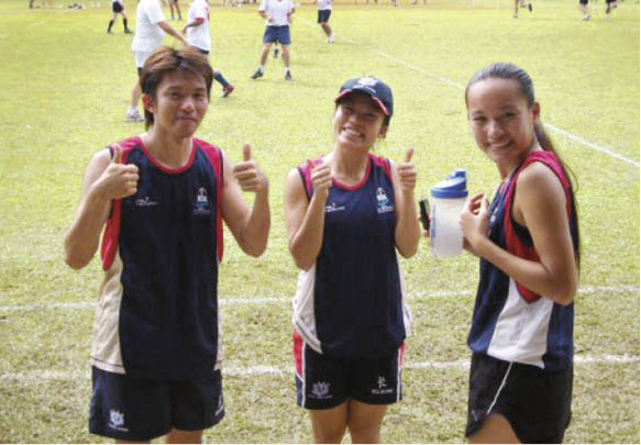 一班女孩子在場上碰撞,受傷成為常事,但卻不是大家想像中粗野,她們的碰撞不能超越肩膊以上的位置,否則會被評判發牌警告,細心看就會發現,女隊員很多都是長頭髮,一把長長秀髮,為這批女將增添幾絲嫵媚,「其實欖球的精髓在於不被撞到,你看我們抱着球不停跑,就是要避開被人撞的機會,所以跑得快是先決條件,體力好一定佔優勢,其次是隊員之間的戰術配合,這些要經過長期訓練才能有理想的合作效果。」