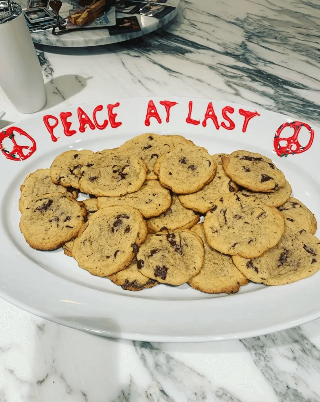 Katy Perry今日(12日)在IG上載了一張標注Taylor Swift的照片,見相中有一盤手工曲奇,伴碟寫上「終於和平共處」(PEACE AT LAST),並畫上兩個平和符號。Katy Perry與Taylor Swift二人重修舊好的消息瞬間引起熱議。