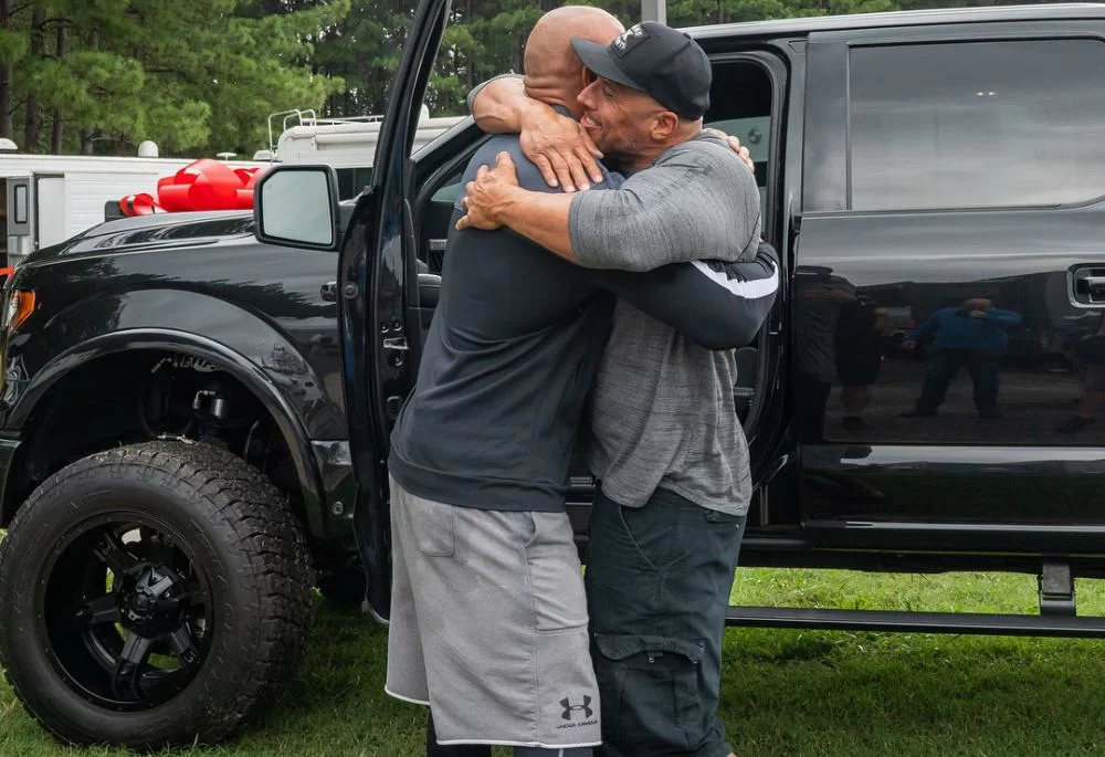 狄維莊遜與Tanoai不論外貌、笑容、身形均十足孖兄弟,自從狄維莊遜於2002年加入影圈,拍攝《盜墓迷城外傳:蠍子王傳奇》開始,一直與Tanoai合作無間。Tanoai早前因拍戲受傷,如今仍在康復階段,狄維莊遜就趁Tanoai回片場,騙他說要拍一條訪問短片,帶他到停車場。狄維莊遜先講述二人合作多年的點滴,表示Tanoai Reed是演藝生涯中的最佳拍檔,更表示好愛亦好感謝對方。聽到這裡,Tanoai已經有點感動,誰知,狄維莊遜突然轉身指指身後,叫Tanoai好好享受新車,Tanoai才發現原來狄維莊遜偷偷買了一架新車給自己。超級驚喜的他雙手抱頭大喊「Oh Man!」更感動得爆喊出來,狄維莊遜見狀亦忍不住上前攬實好兄弟,更表示,比起Tanoai這十七年來為他付出的,這部新車絕對不算什麼。the-rock-5-a932bb狄維莊遜事後把這條短片上載到社交網站,更寫下感言,再次多謝Tanoai的付出。他提到,Tanoai多年來因拍戲而跌斷過骨、肌腱受傷、韌帶撕裂,但仍然非常專業,出盡全力做動作,因為他們二人有共同目標,盡可能製作世界上最棒的電影。狄維莊遜更謂,Tanoai除了是自己的好兄弟,亦代表整個荷李活的特技動作演員,大讚他們是影圈的中流砥柱,多謝他們付出過的血汗、淚水及時間。