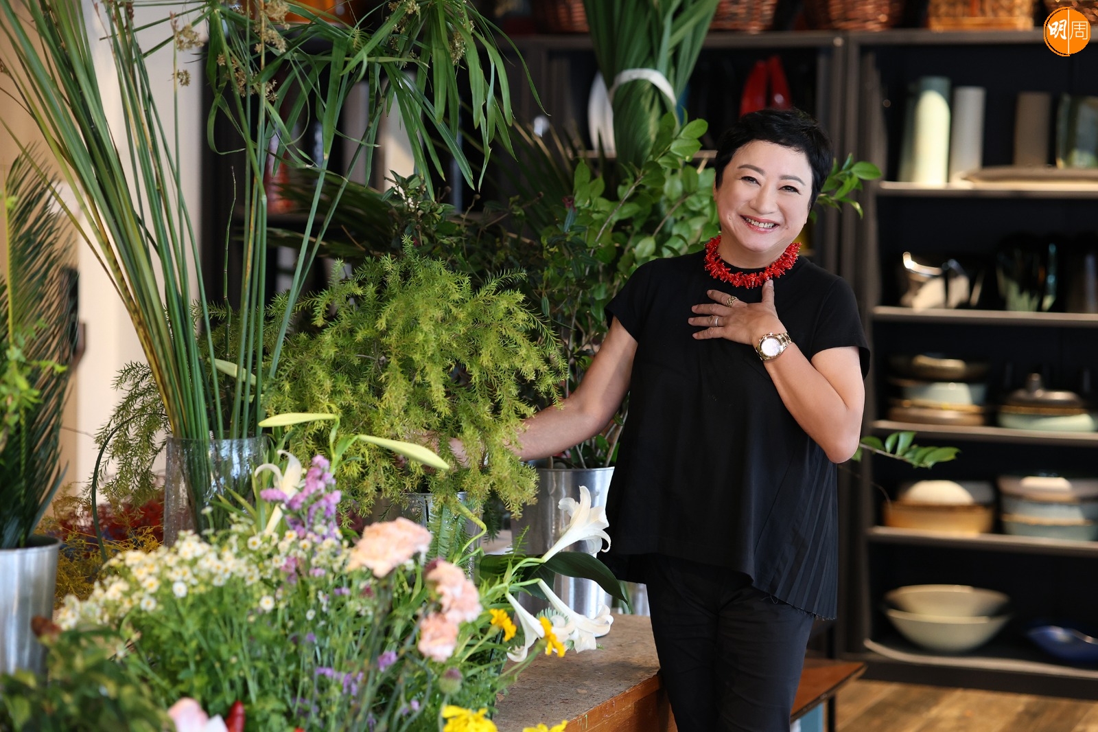 當然,少不了她多年的插花嗜好,她特別醉心草月流(Sogetsu,日本三大花道流派之一),「日本插花有一個好處,它不需要很多花材,有時候一枝花、一塊葉就已經很漂亮,不會花很多錢,而這個流派很好,是free style形式,我經常想如何推動這個花道,其實在疫情的時候,我也有教插花,」