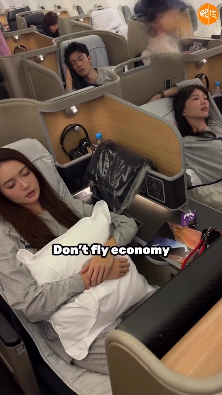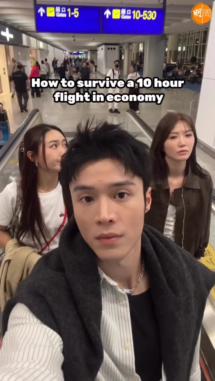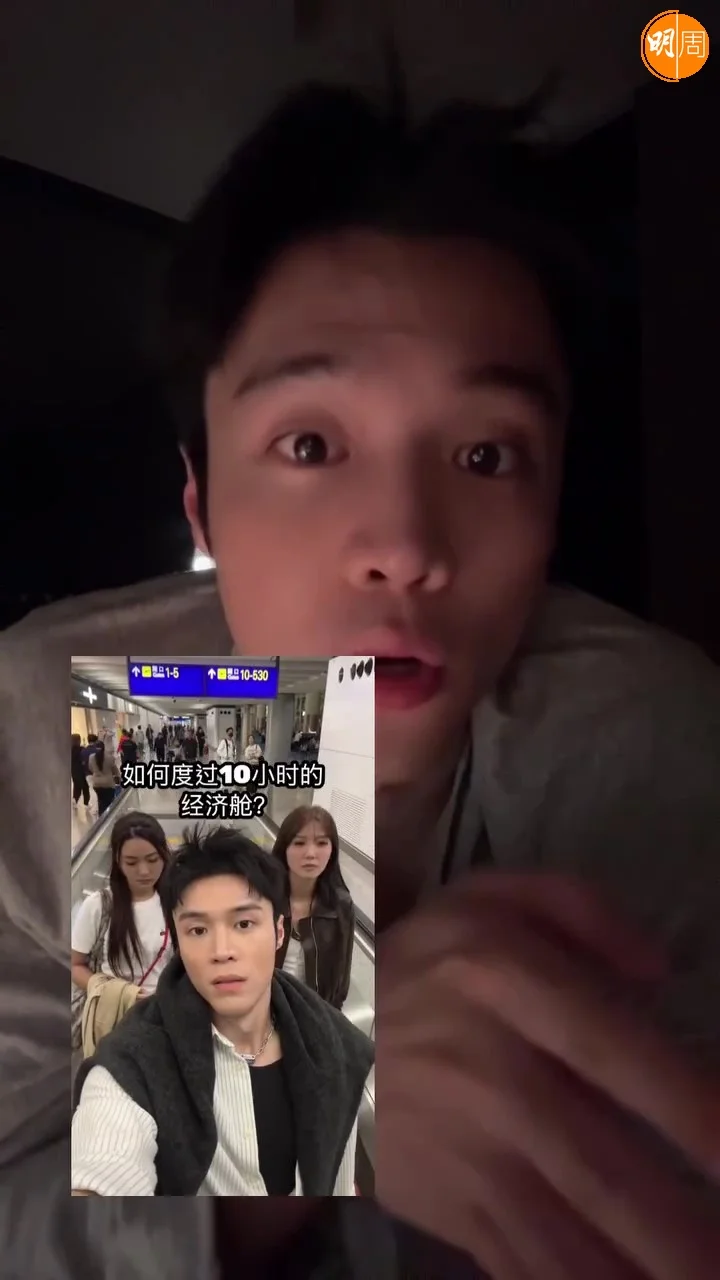 丁子朗在ig和小紅書的片段分別配以中、英字幕:「How to survive a 10 hour flight in economy(如何度過10小時的經濟艙?)」和「Don’t fly economy(不要乘坐經濟艙)」,留言分別是「Sorry not sorry」和「大家學廢了嗎?」