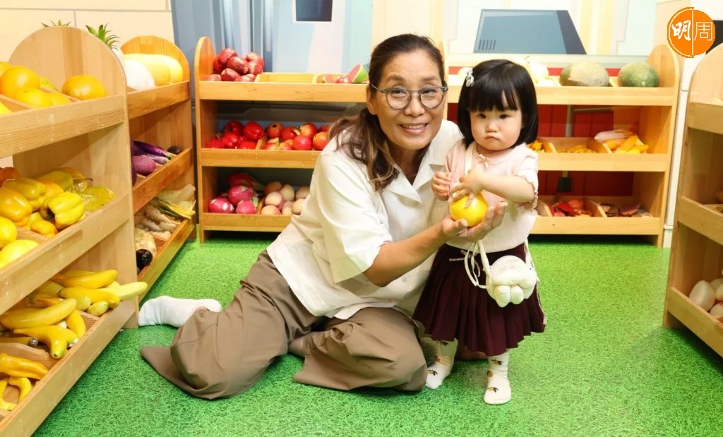 一歲半的Ellery(尹芊瀠)聽到音樂,扭動小小身體跳起舞來,外婆楊盼盼形容她性格沉穩、遇事冷靜,「有一次她爸爸用紙箱砌了一個玩具廚房,我陪她玩的時候,大紙箱突然倒塌下來,我以為她會嚇到大哭,怎知她害怕卻沒有哭,努力推開頭頂的紙箱,然後慢慢爬出來,我在旁邊觀察,心想這個小朋友不錯,跌倒會自己爬起來。」