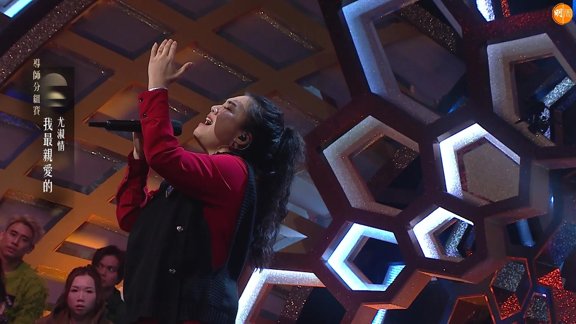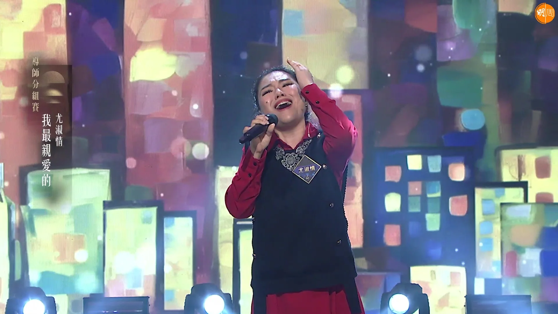 《中年好聲音4》昨晚(15日)播出「導師分組賽」最終回,戰況非常激烈,紅隊273分,綠隊271分,紫隊270分,紫隊需要淘汰一人,結果帶病上陣失準破音的袁帥被淘汰;最後出場的紅隊尤淑情唱張惠妹名曲《我最親愛的》感動全場,3位女評審肥媽、海兒、谷婭溦均動容落淚,最終奪98分超高分,成為《中4》首個MVP。