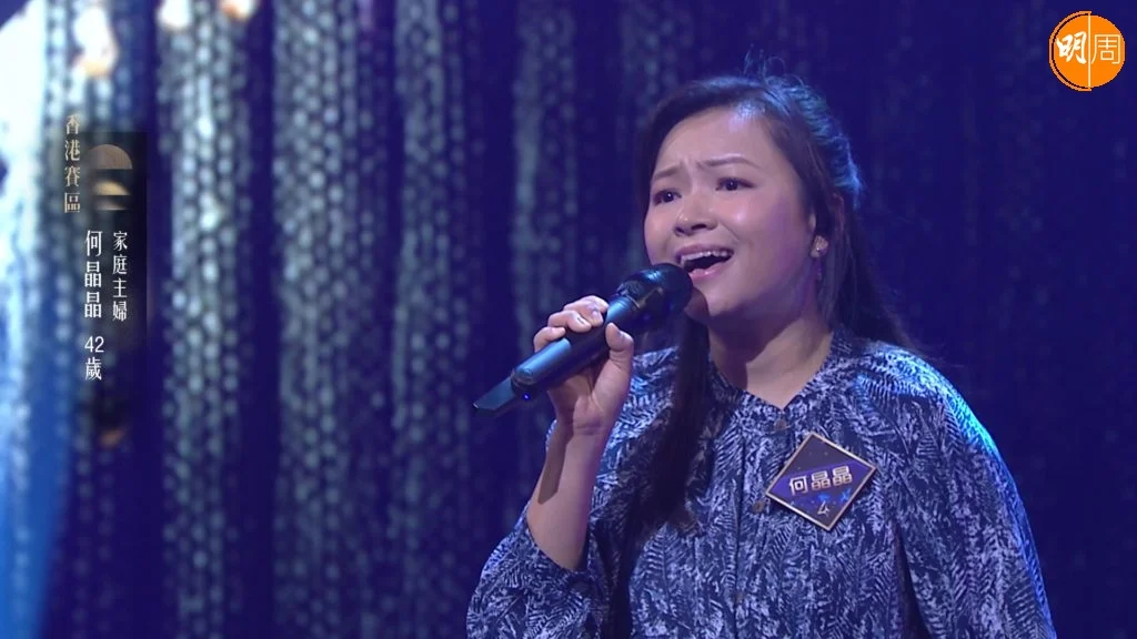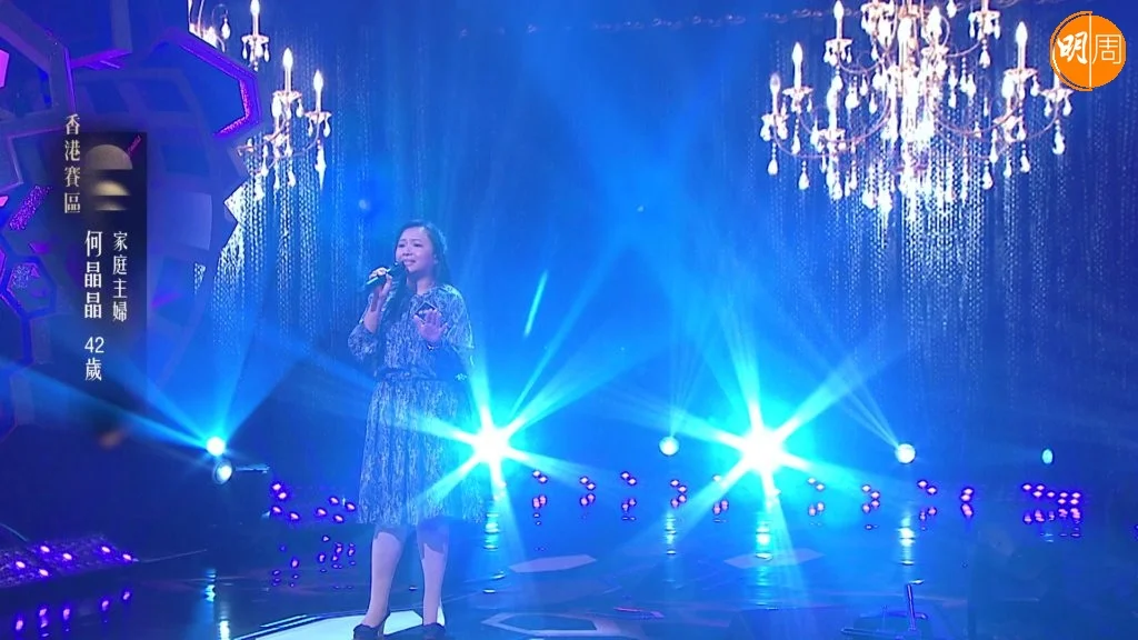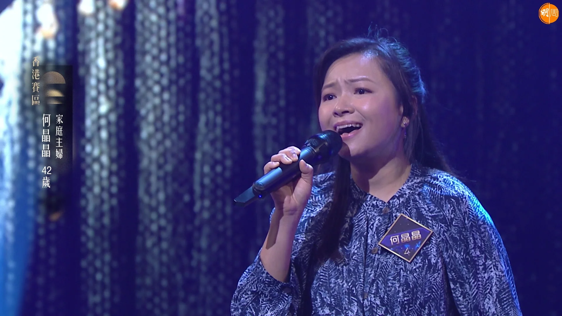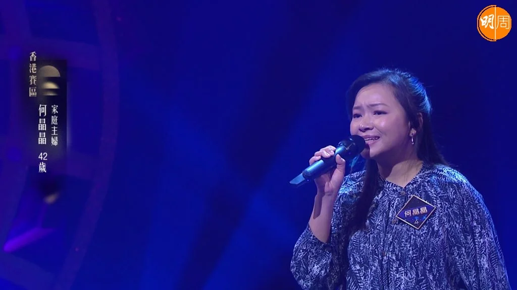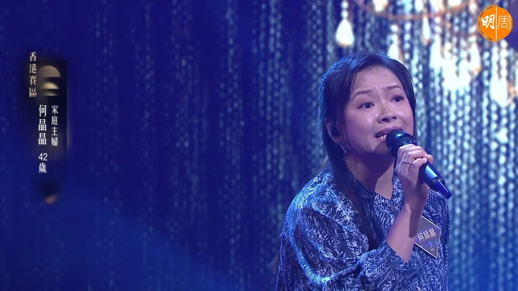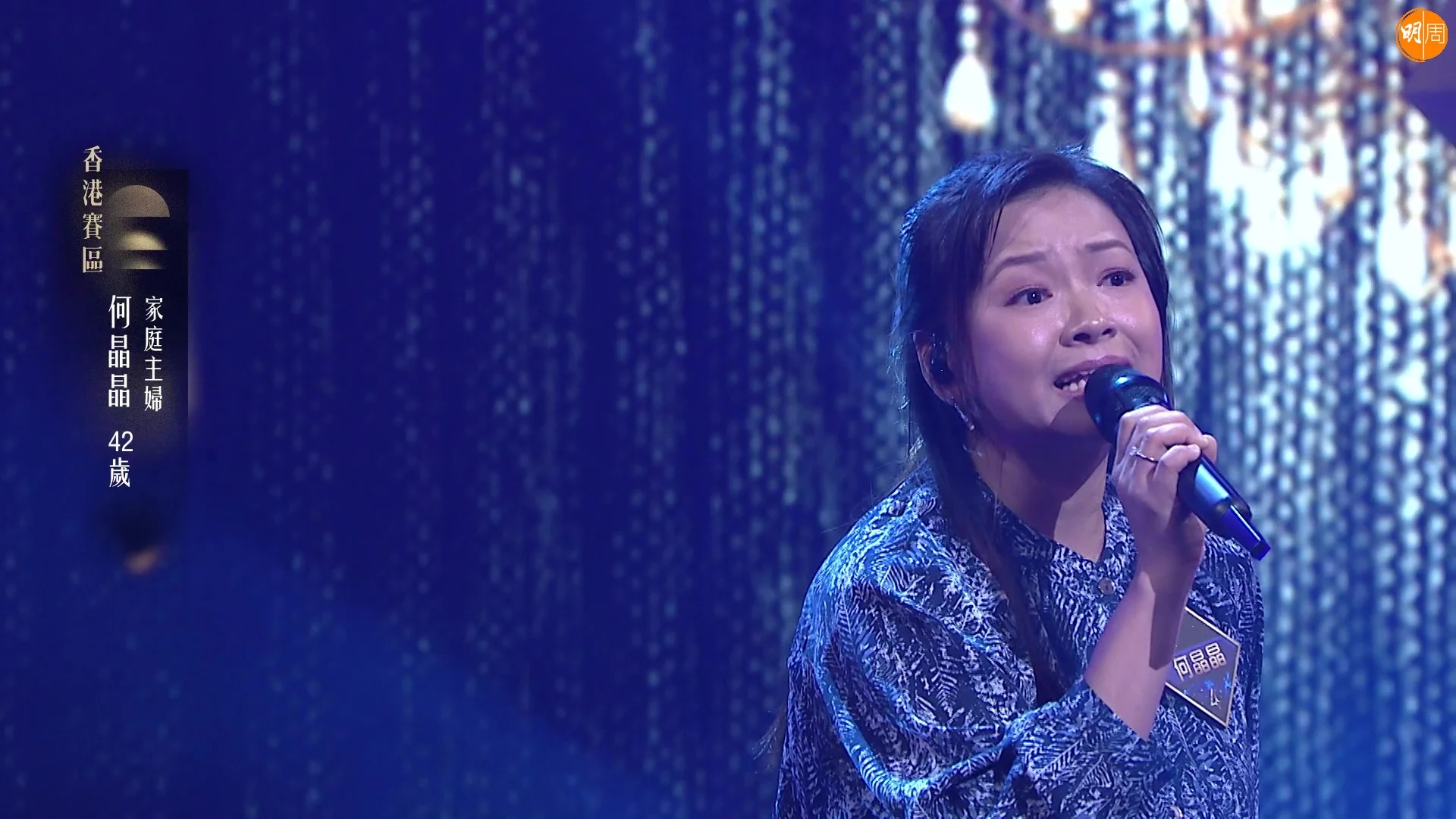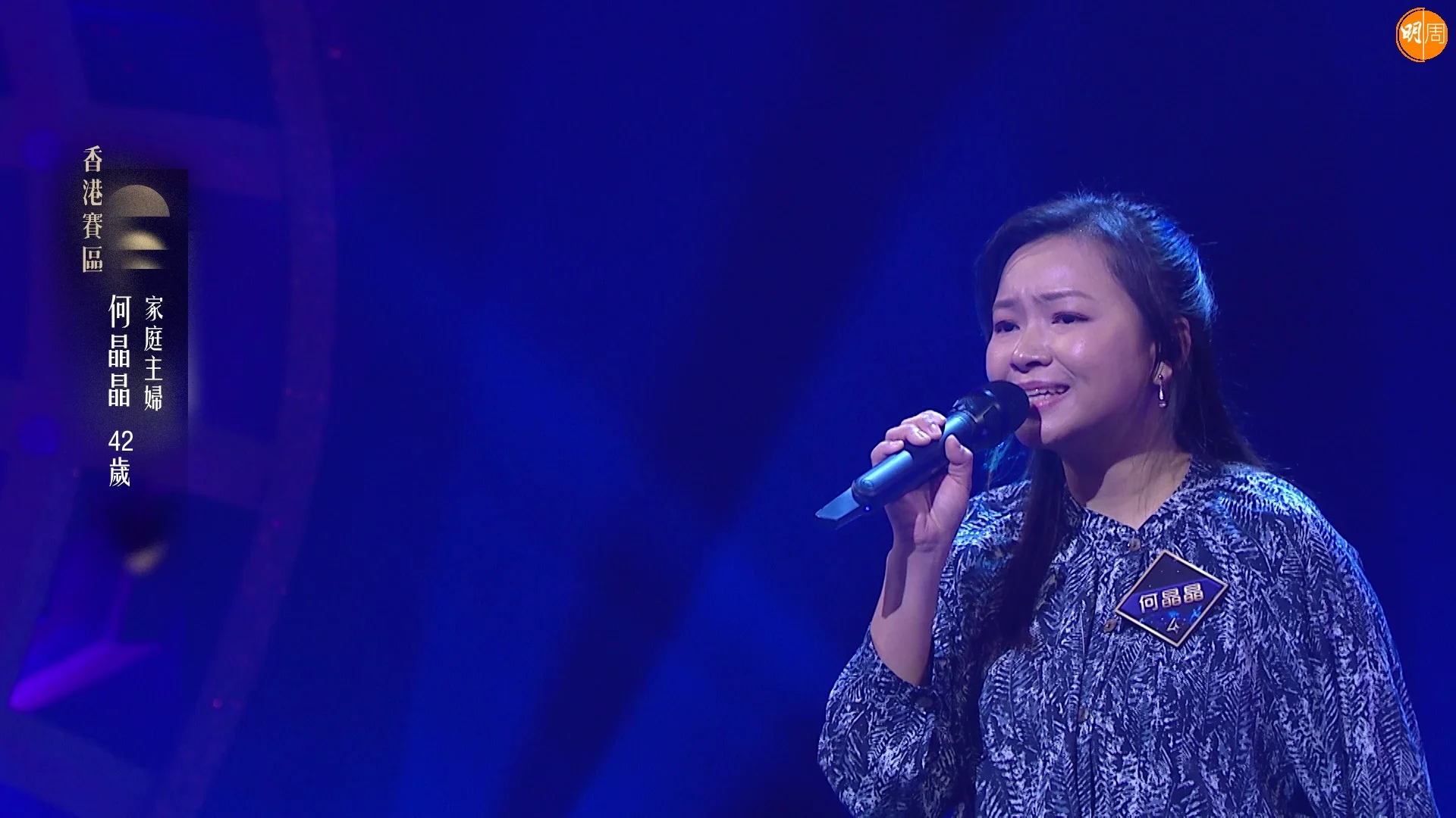 另一矚目參賽者是42歲家庭主婦何晶晶,她選擇獻唱《女神》。原來她曾在2001年《全球華人新秀歌唱大賽》香港區擊敗鄭俊弘奪冠,其後轉戰配音界,近年專心照顧家庭。這次在兒子鼓勵下重踏舞台,她感慨「既熟悉又陌生」。晶晶表現出色,一段流暢高音同時觸動張佳添、谷婭溦與海兒按燈。張佳添讚賞:「你嘅感情係幫到你嘅,令我覺得你唱歌好有內心嘅思想、好有感覺。同埋佢一升key,我哋大家就嚟啦一齊撳燈,因為你帶動到我哋。」周國豐亦稱讚:「你好懂得聲音運用,你好入咪,你把聲令人聽得好舒服。」