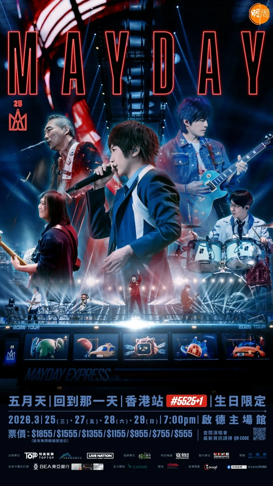 台灣天團五月天原定3月24、25、27和28日在啟德主場館舉行4場巡演香港站,主辦單位昨晚(9日)卻突然宣布取消3月24日的場次並安排退票,新加入3月29日生日限定場次,當日是五月天的「成團日」。