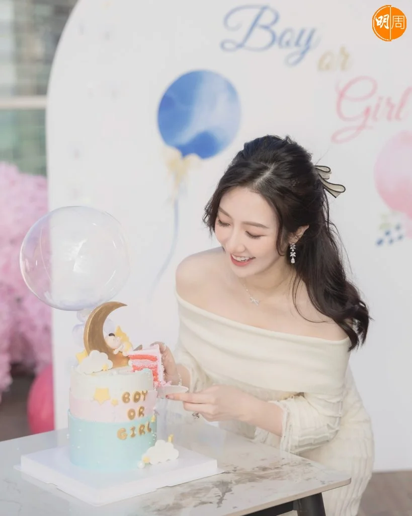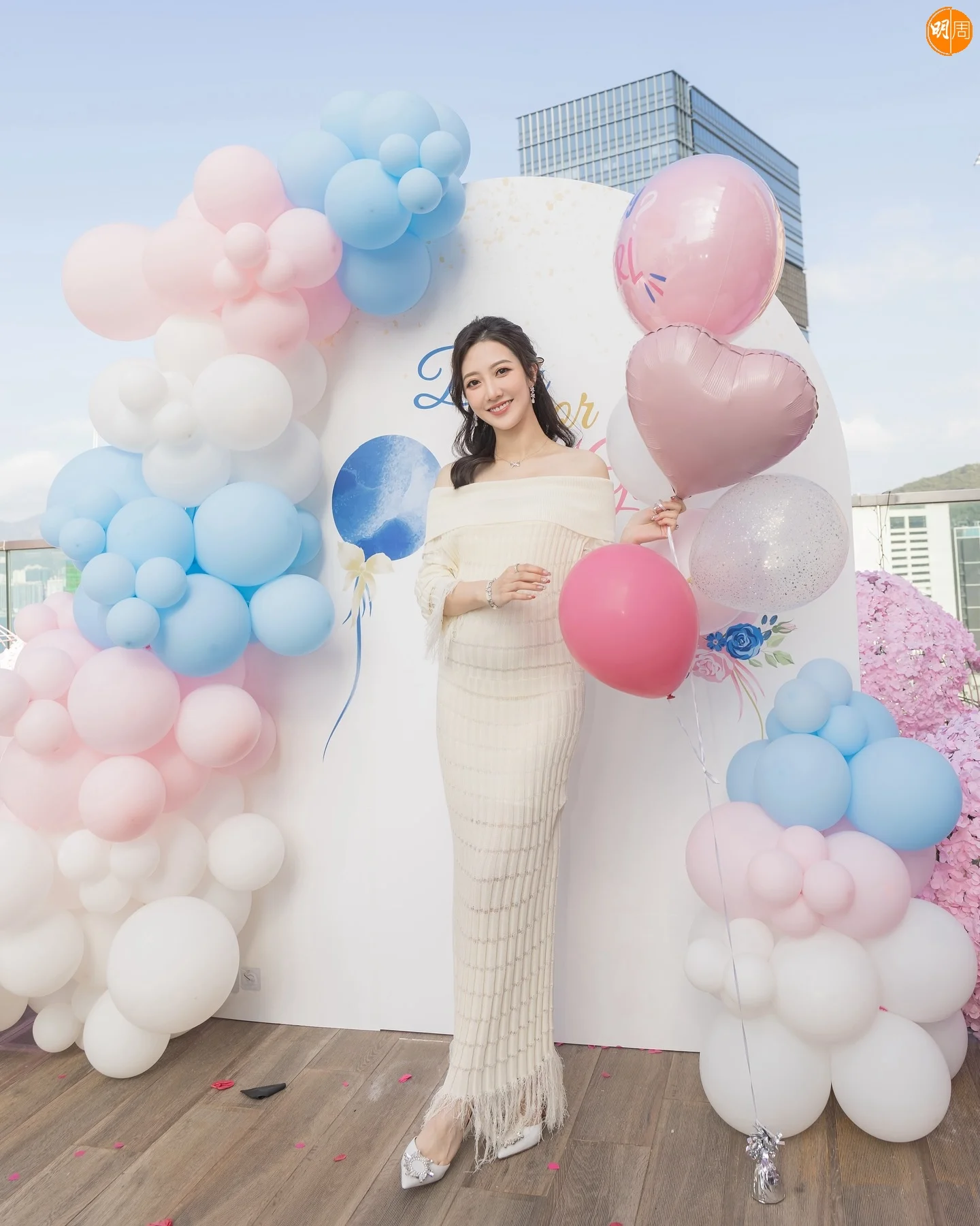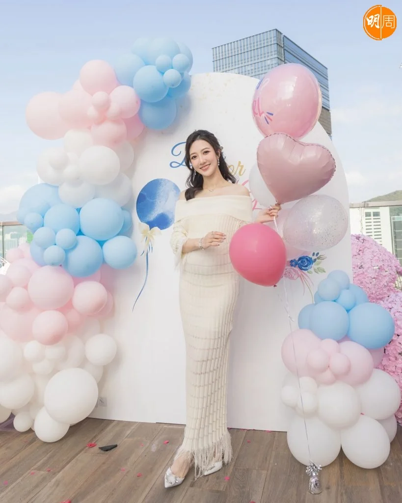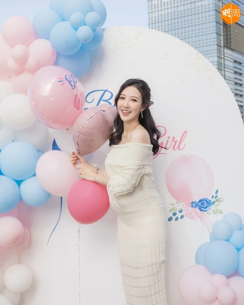 與圈外老公結婚1年成功造人,現懷孕約6個月的依婷,昨日(26日)在社交網分享獲一班圈中好友麥明詩、陳懿德、蔡嘉欣、陳詩欣等出席她和老公一同公布BB性別儀式,宣布佗B女。