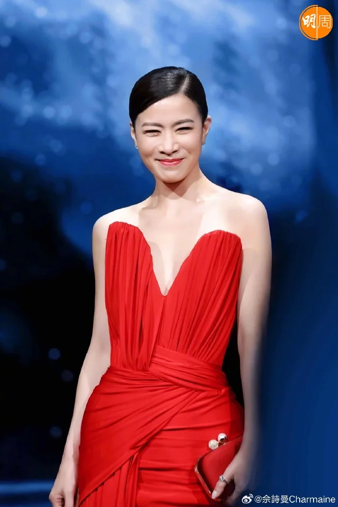佘詩曼早前憑《新聞女王2》成為TVB首位「四封視后」,昨晚(5日)她出席微博之夜活動,先以艷麗紅色低胸晚裝,與葉童一齊行上紅地氈;再以水晶鏡面刺繡晚裝上台,與葉童、李乃文和童瑤齊獲「微博年度實力演員」榮譽。