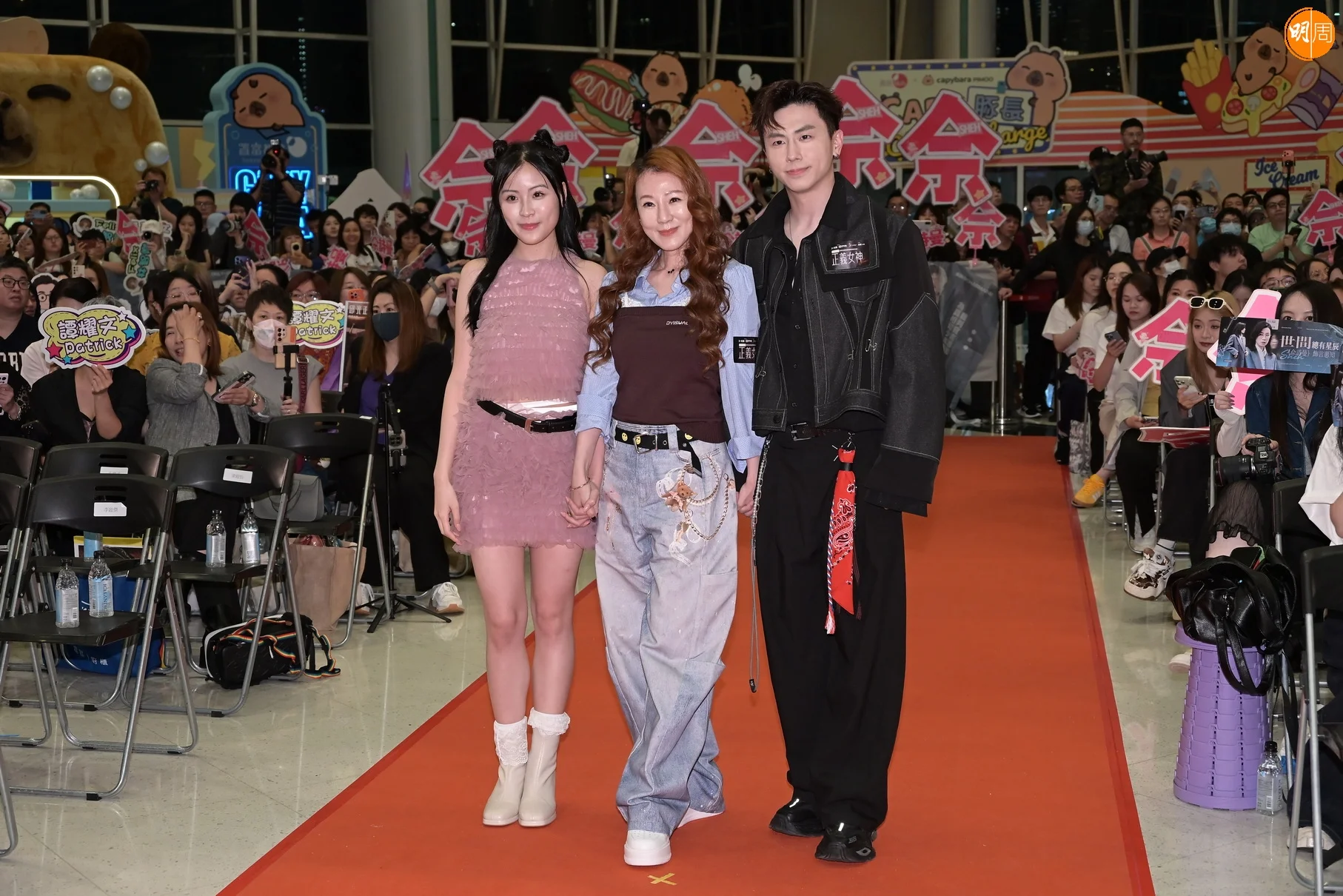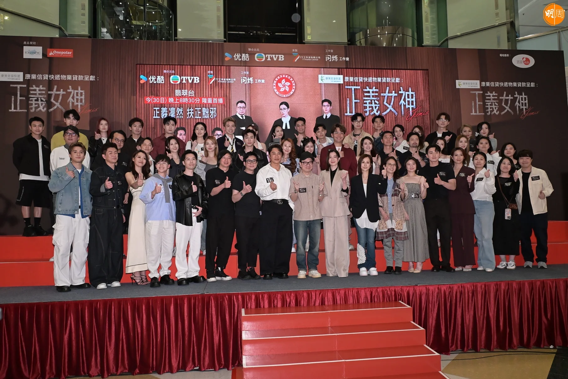 無綫新劇《正義女神》昨晚(30日)香港首播,總監製鍾澍佳、佘詩曼、譚耀文、陳煒、周嘉洛、馬貫東、蔣祖曼、黃庭鋒、劉倬昕、丘梓謙、黎澤恩、鄧智堅、林俊其、劉展霆、林智樂、文頌嫻、許惠菁等到商場與觀眾一起睇直播。