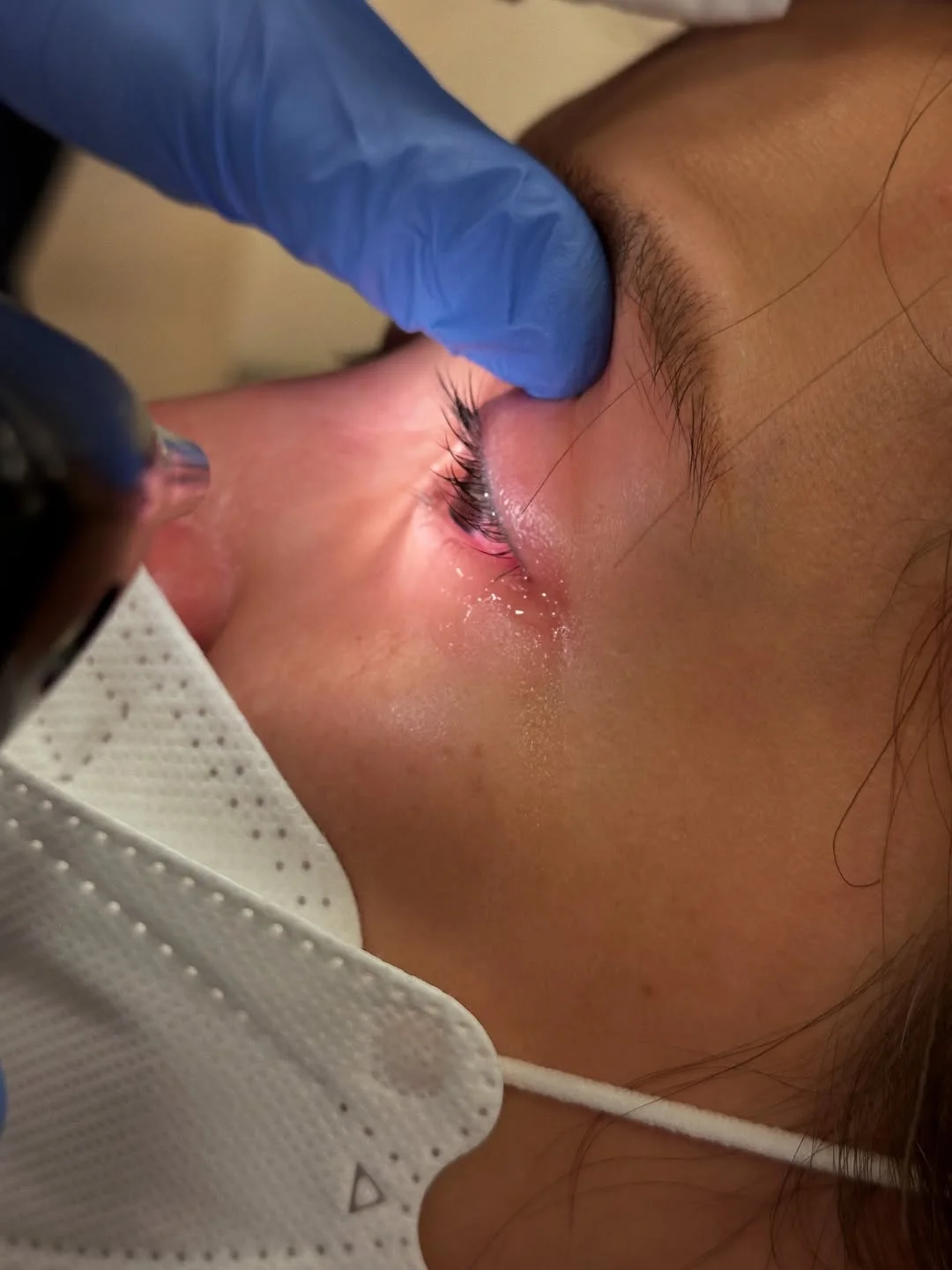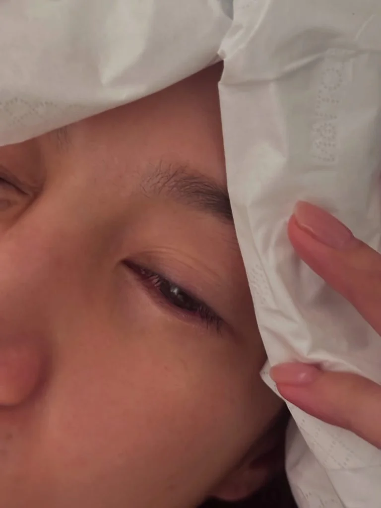 傅嘉莉經醫生診治後竟出現惡化,「我昨天眼晴痛到不能形容,從來沒有試過眼晴痛到在醫生面前哭,連頭,耳後,肩膀全都痛,一丁點光也會感到無比刺痛,眼晴又紅又腫又一直流眼淚。一邊害怕影響拍攝進度,另一邊也害怕永久影響視力。醫生說眼角膜受損,處理不當就會變成嚴重潰瘍,因為角膜可以再很短的時間情況變得很差,昨晚我就是突然間變得很差很差。」