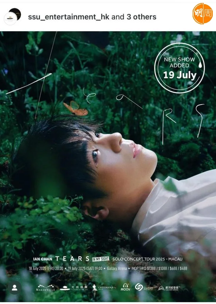 澳門加場門票,將於下周一至三(23、24、25日)於Miro官網、BOOKYAY及銀河票務(Galaxy Ticketing)發售。
