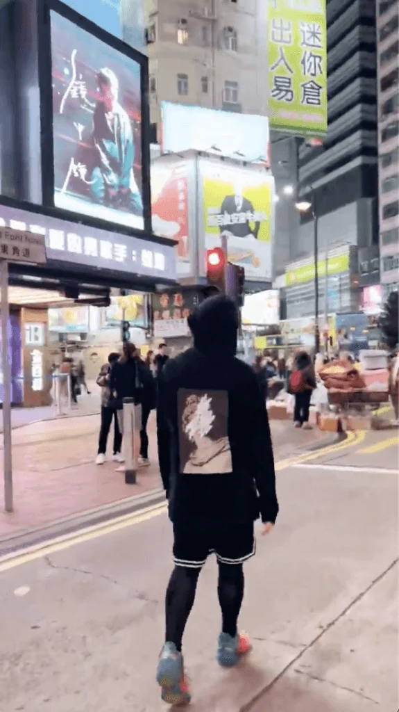 姜濤早前在各音樂頒獎禮上大豐收,更於商台叱咤頒獎禮上,蟬聯「我最喜愛的男歌手」及「我最喜愛的歌曲大獎」,人氣持續高企。姜濤今周推出「第九胎」新歌《鏡中鏡》,「姜糖」落重本為偶像進行多炮應援活動,以及買下多個廣告,應援第一彈便租下位於銅鑼灣的一個巨型露天電子廣告板。而姜濤趁着廣告落架前一晚,低調現身廣告前快閃打卡,他穿上黑色運動服和波鞋到場,包到實的他未被途人認出,他在友人的陪伴下駐足觀賞廣告燈箱,不消一會便被粉絲發現,姜濤即拔足往維園方向狂奔,未有令「姜濤灣」造成混亂。