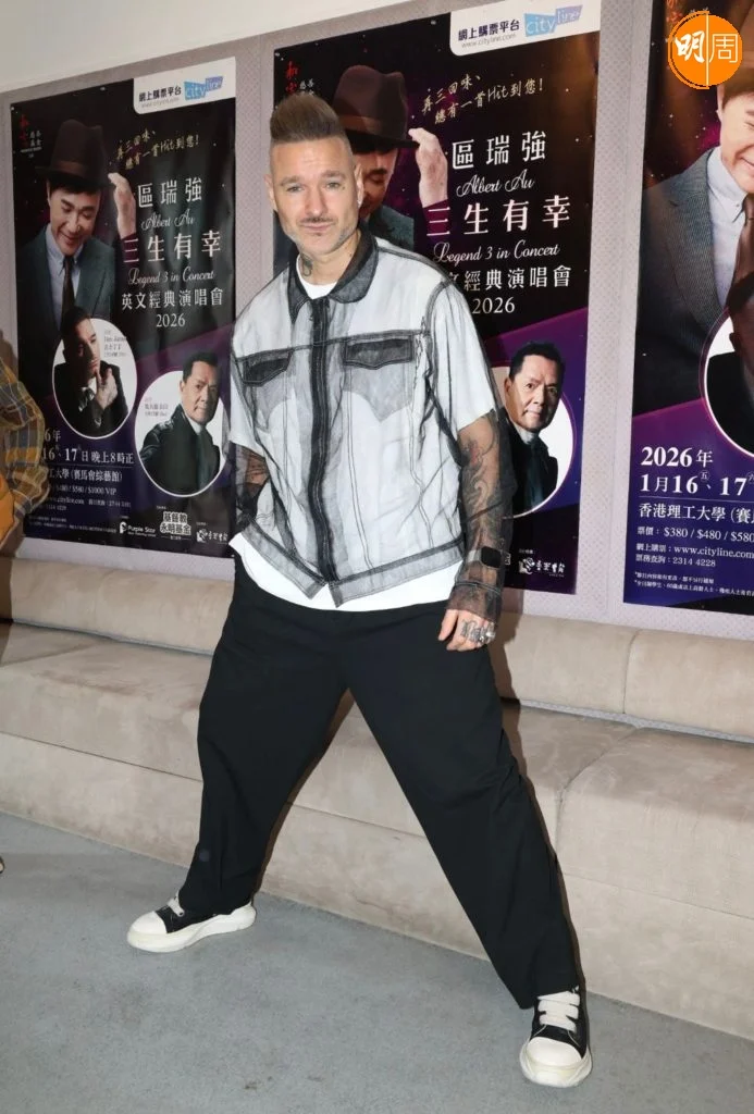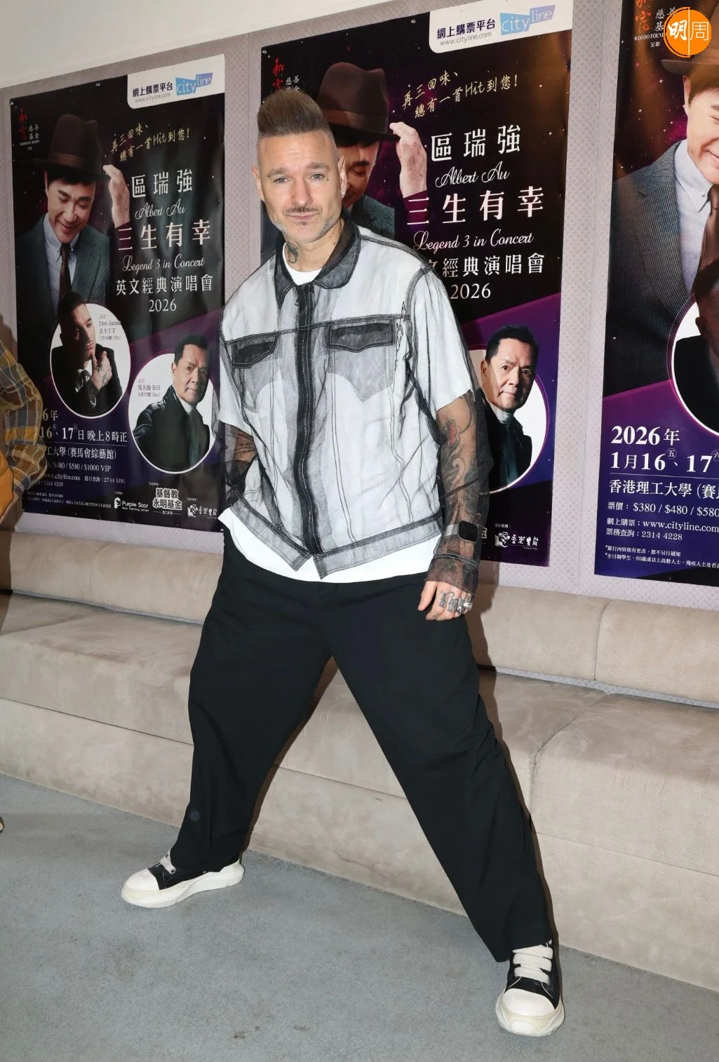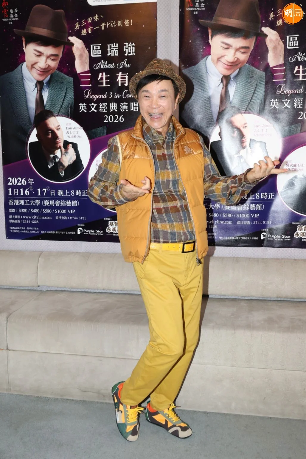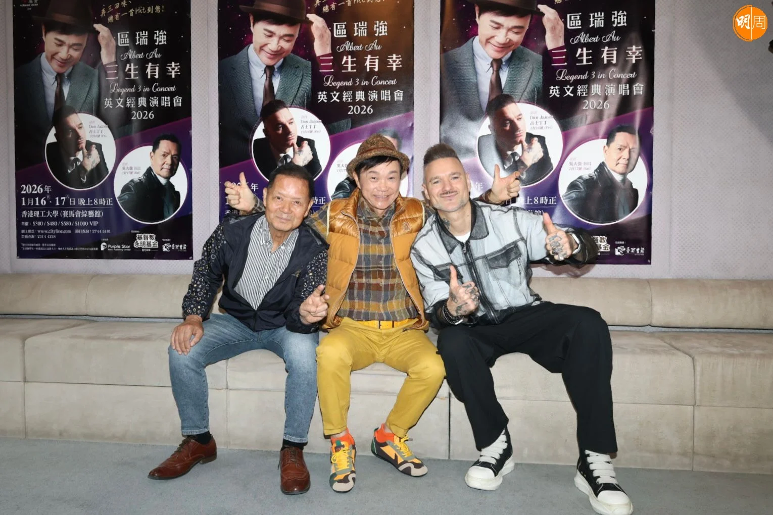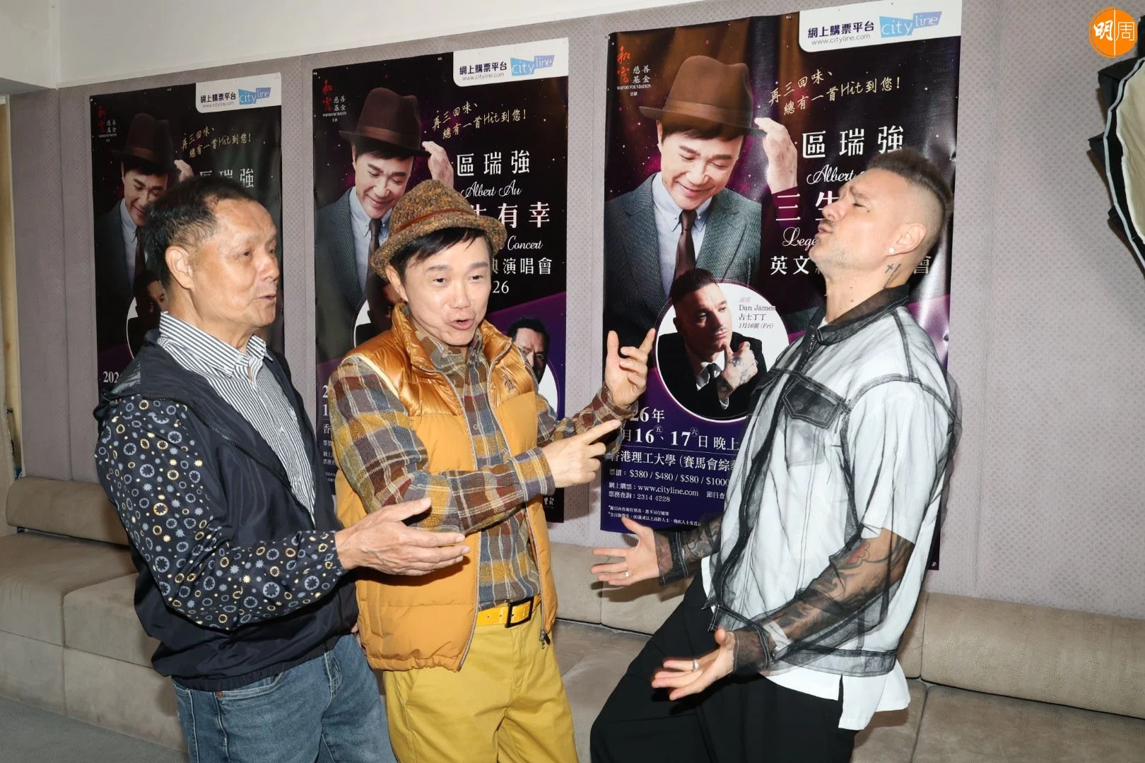 區瑞強(Albert)今日(24日)與吳大強(Bill)和占士丁丁(Dan James)舉行記者會,公布將於明年1月16及17日舉行《區瑞強三生有幸英文經典演唱會2026》詳情。Albert於會上跟吳大強和占士丁丁獻唱《Devoted to you》,合照時Albert見占士丁丁高了一截,即場教他擘腿廣東話,順便遷就大家高度,丁丁一學就識,場面搞笑。