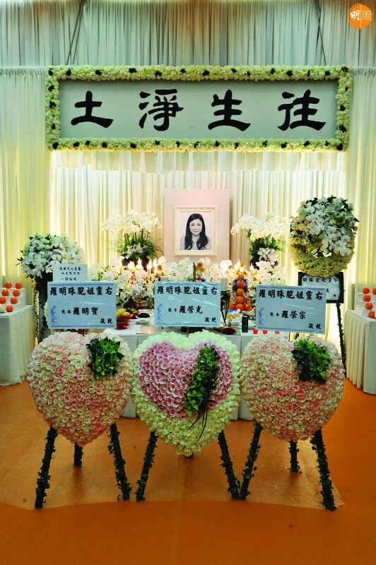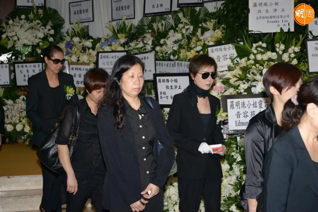 她生前好姊妹袁潔瑩(Fennie)一早到靈堂幫忙打點,穿上黑色素服的她,一臉哀痛,李麗珍亦哭至雙眼通紅,場面傷感。高志森跟羅明珠相識近三十年,執導過其處女作《開心鬼》,他表示看過珠女的遺容,直言很大感觸,「珠女太年輕了,見到羅母眼淚流不停,始終是白頭人送黑頭人。」