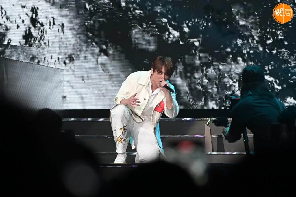 上月(29日)舉行的《新城勁爆頒獎禮2022》,MIRROR 9缺3,腳傷未癒的姜濤當晚亦缺席,事隔幾日,姜濤今晚似乎已痊癒,一開始就跪地演出,台下歌迷都被嚇一嚇尖叫不斷。