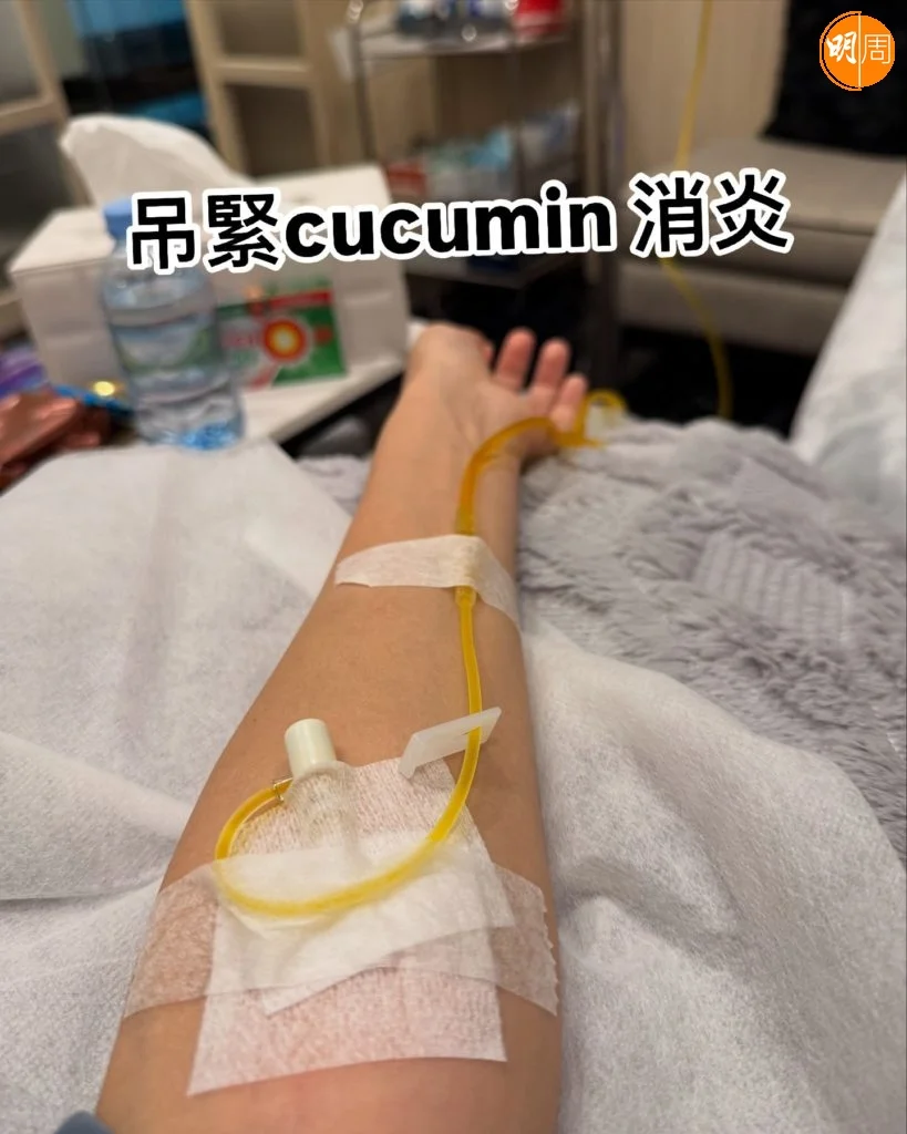 吳忻熹(Nathaliie,阿Nat),前日(24日)在社交網上載身在醫院病房內的照片,未透露原因,至今晨上載一袋裝有血紅色液體的醫療液體袋照片,透露心臟及肺部積水。雖然抱病,但阿Nat仍搞笑留言︰「大家今晚跑馬有冇心水?冇問我攞!我大把!有1 Litre﹗1 Litre心水,心積水。點解個心可以積咁多水?抽咗1 Litre心水。肺又積水,原來個心會積水。#心包刺穿術」。