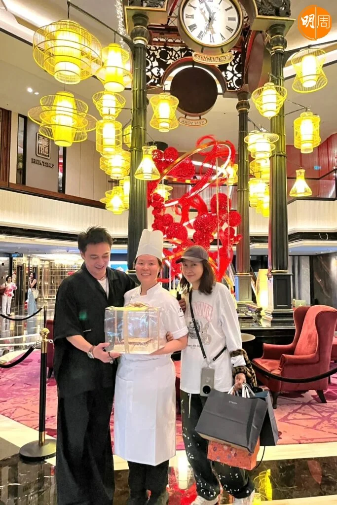 鎮宇之前陪老婆返新加坡過年。