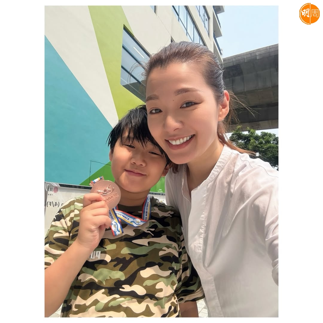 呂慧儀雖然是單親媽媽,又要忙拍處境劇《愛.回家之開心速遞》,但對兒子「蟹籽」的陪伴與愛從不缺少。近日她在社交網分享11歲囝囝參加游泳學校於復活節舉辦的全港爭霸戰,她表示賽前一晚,蟹籽跟她說:「佢覺得今次唔會攞到獎牌,因為泳隊啲人好勁游得好快。我同佢講,你都游得唔慢,從來參加比賽都係用嚟check吓自己個水平去到邊度,係用嚟挑戰自己,今次你係升咗level游高一級對手當然係勁啲,只要你贏到自己嘅PB,媽咪就好戥你開心!獎唔獎牌都係bonus,最緊要贏到以前嘅自己。」