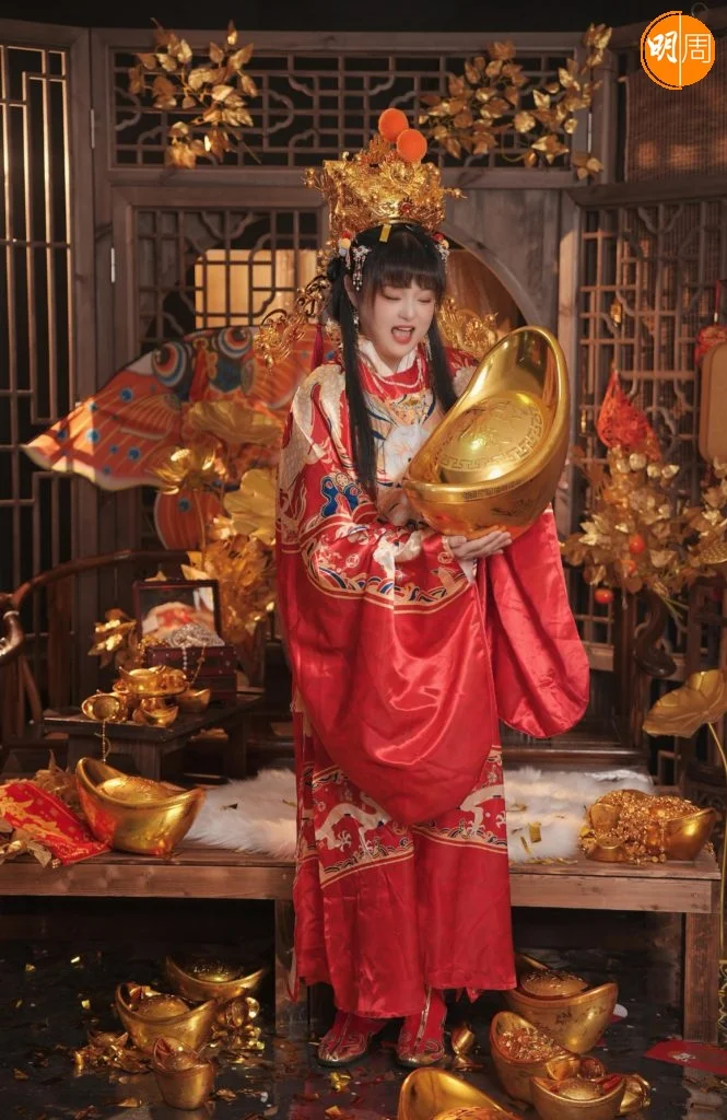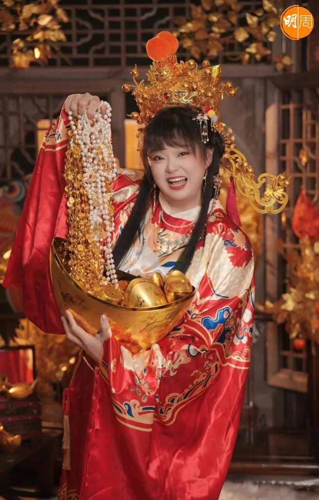 今年細細粒為《明周》拍攝了一輯賀年照,腰圍由135cm減至85.5cm(33.5吋)的她,化身女財神,更與讀者分享每年必備的聚寶盆,她說︰「2025年,終於減肥一周年啦,終於可以露條腰出嚟,今年應該會再有一個驚喜俾大家!」