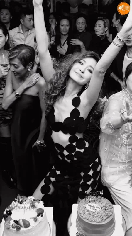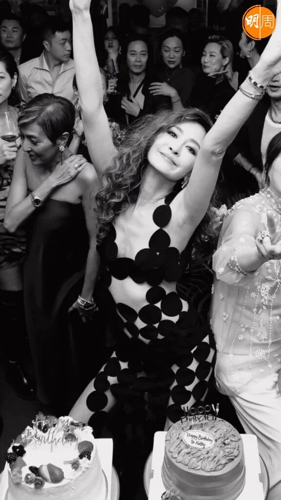 周汶錡(Kathy)剛於520度過49歲生日,今日她在IG上載穿上性感黑衣裙滿場飛,與老公及到賀的好友瘋狂合照,留言:「#520 !!!!我很高興能與大家分享我生命中最快樂的時刻。所以謝謝你讓我的生日成為我度過的最美好的一天!」