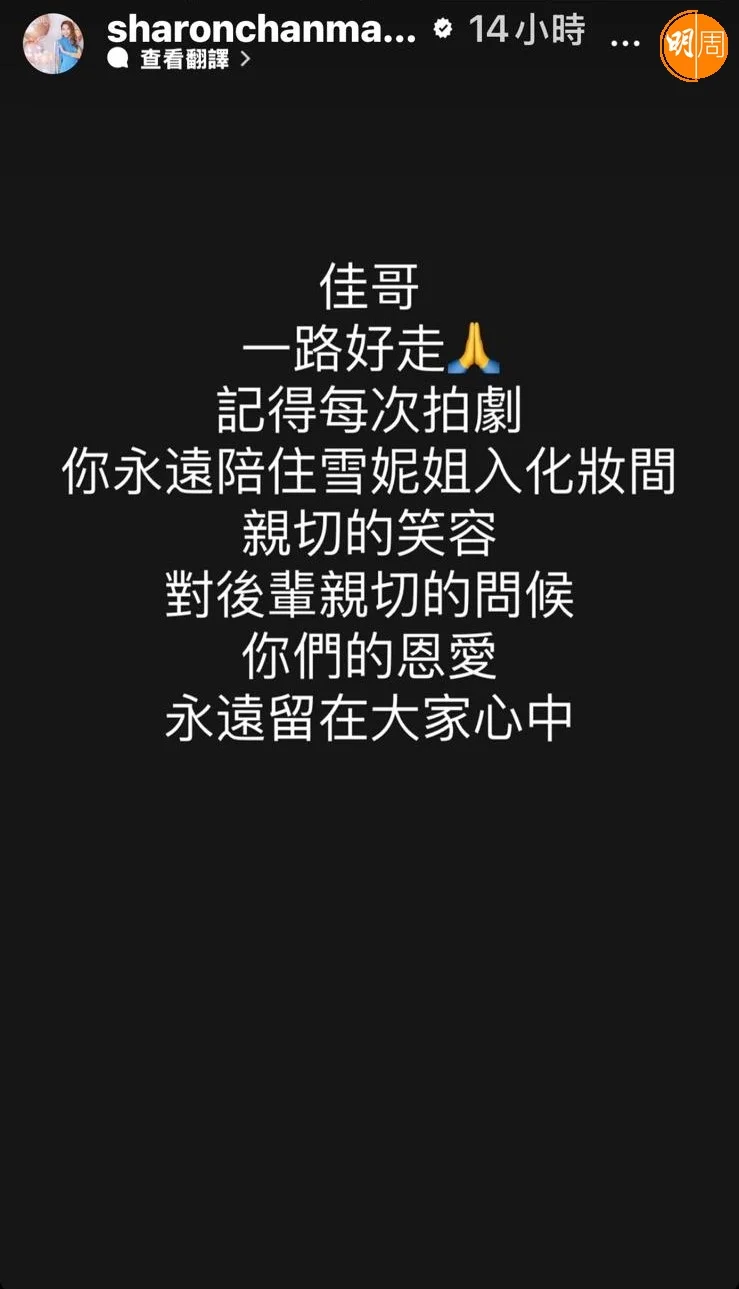姜大衛就在社交網貼上分別與張徹導演、劉家良和唐佳的舊照片,不捨留言:「我這一生人最重要嘅三位師父都已離我而去。」陳敏之亦在ig限時動態寫上:「佳哥,一路好走!記得每次拍劇,你永遠陪住雪妮姐入化妝間,親切的笑容,對後輩親切的問候,你們的恩愛,永遠留在大家心中」!胡定欣亦有帖文:「腦海有無數喺化妝間錄影廠,佳哥窩心陪伴著雪妮姐開工,出相入對甜蜜的畫面。佳哥,願你安息,一路走好」!就連張致恒都有發文:「聽到呢個消息我真係好心痛,佳哥……多謝你同雪妮姐曾經喺片場照顧我,安息希望你」!