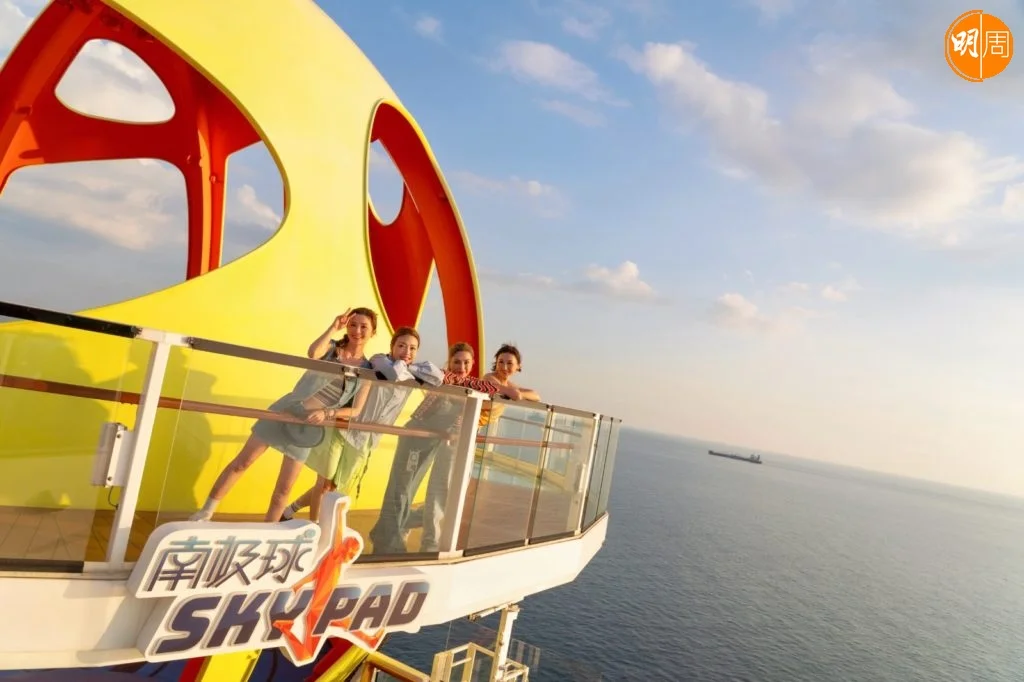 四人首先參觀遊輪上的各種活動,最後齊齊試玩「甲板跳傘」,祖兒率先上陣,玩完後,由阿嬌扮演的特約記者上前採訪感受,祖兒大叫緊張,「緊張緊張,成個人都好繃緊,有啲難平衡,大家小心啲,盡量將自己感覺放輕鬆。」輪到阿Sa,可能得到祖兒的傳授,能成功飛起一點,玩完後她馬上分享經驗,「我知道嗰個秘訣,你要由腹部開始以下,全部都會捉緊,我依家個pat pat好緊呀!」最後輪到高Ling,只見她不停盤旋,雖然十分搞笑,但大叫很爽,「成日諗住『我要飛高啲、我要飛高啲』,但又唔知點發力,但係好爽呀!」