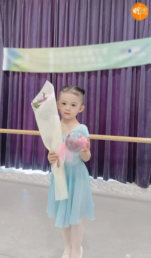 賈曉晨(JJ)一六年跟樊少皇結婚後,先後誕下兩女,分別是四歲的「小飯兜」及一歲的「小飯團」,一家四口幾乎長居內地,有女萬事足的JJ,搵錢養家重任就交給老公,她就專心相夫教女,日前大女「小飯兜」幼稚園畢業,她於社交平台貼上女兒準備表演的近照,小飯兜完全遺傳了她的靚女基因,JJ寫道:「第一次參加孩子的畢業禮,雖然跳的一言難盡。 但還是掩飾不住做父母的激動,送上了慶祝的鮮花。」