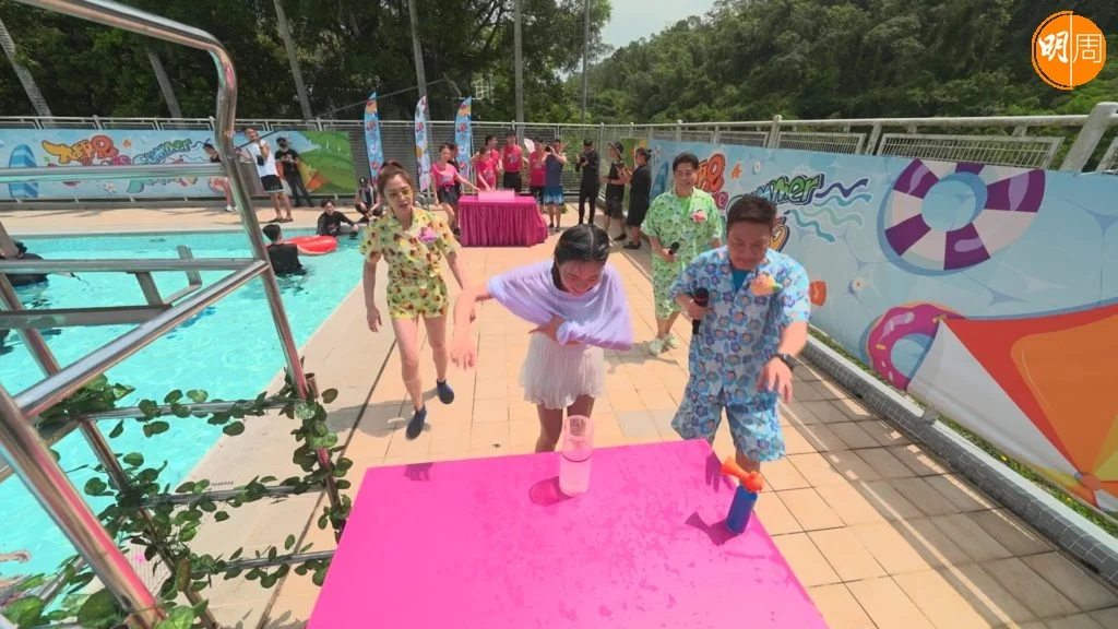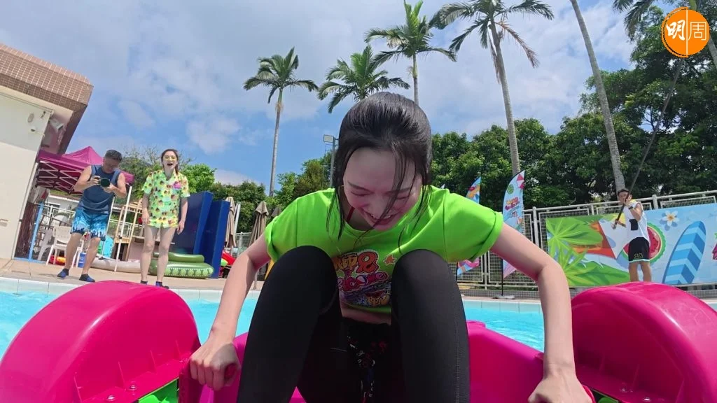 今晚(22日)一集焦點,落在「老鼠屎」馮盈盈身上,當她對上龔嘉欣大玩「浮牀大混戰」時,竟遭望落弱質纖纖的龔嘉欣一嘢拉落水;除了冇氣冇力,「手腳唔協調」的盈盈於水上障礙賽駕駛手搖船時,竟出現遲遲未能成功上岸的困境,被「大師兄」錢嘉樂揶揄為「美貌與智慧笨重」!而同隊的昔日緋聞男友鄭衍峰見狀,亦忍不住踩多腳:「你唔想要嗰八萬蚊你出聲啊!」多Joy多難的盈盈,於拍攝期間被清潔姐姐指貌似錢嘉樂前女友李珊珊,對此錢嘉樂即掟出八字真言機智回應:「珊珊來遲,盈盈不離!」