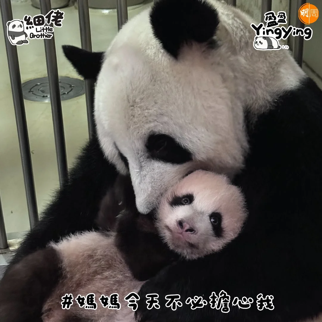 中央最新送贈香港的兩隻大熊貓安安和可可周日(8日)在海洋公園首度登場跟公眾見面,園方連日貼上兩隻大熊貓的帖文作宣傳,至昨日才貼出多張龍鳳胎家姐和細佬的甫士照,令一日不見如隔三秋的契爸契媽滿心歡喜,彌補有幾日未能與家姐和細佬見面之苦。