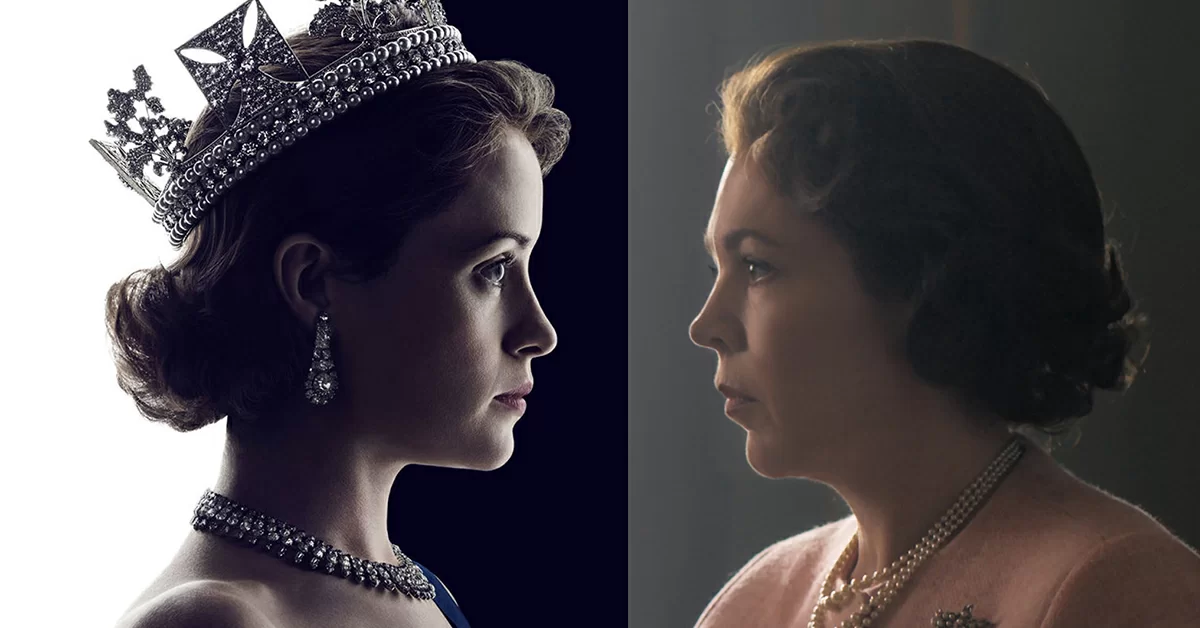 嘉莉霍爾(左)將放下王冠由奧莉菲亞高文接演中年版英女王。
