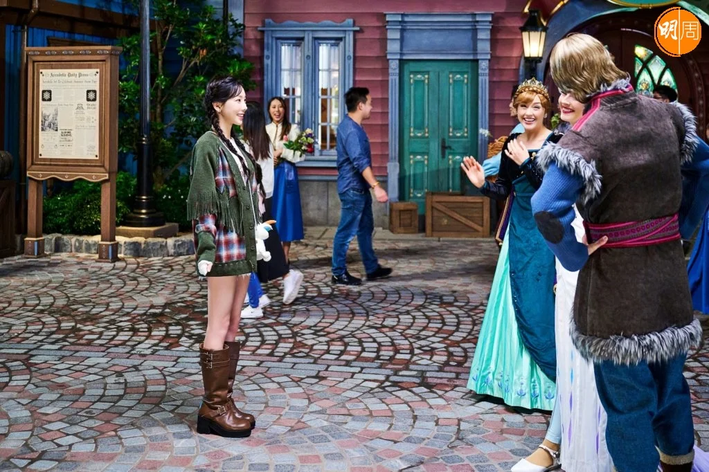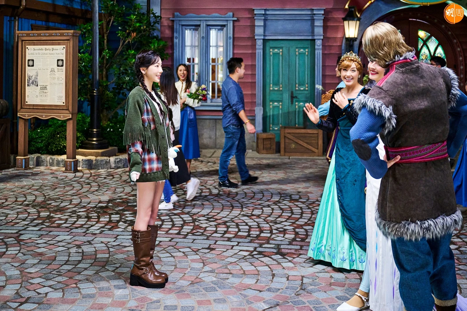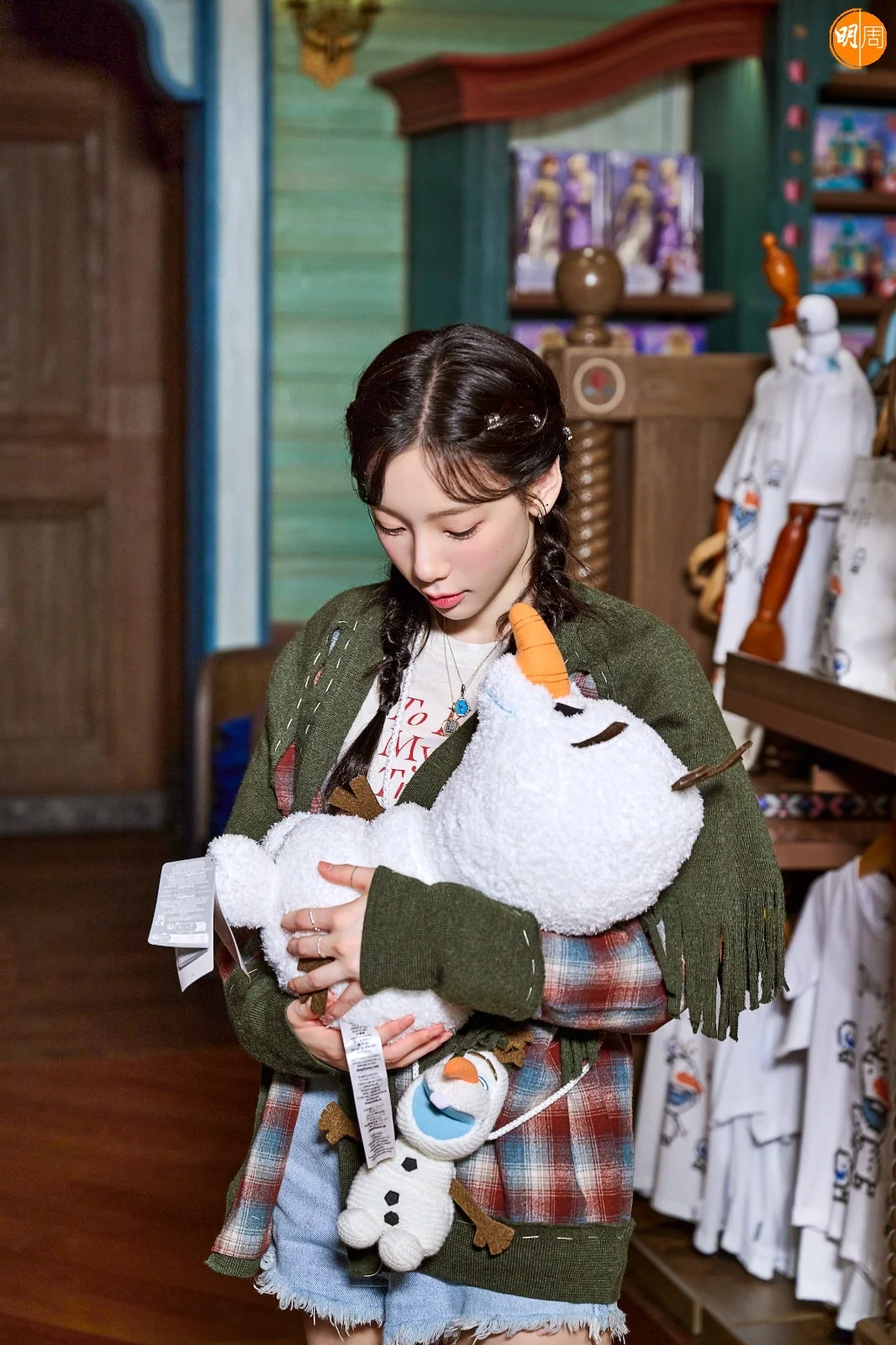 韓國女星太妍,過去曾為動畫《魔雪奇緣2》獻唱韓國版主題曲《Into The Unknown》,今年正值電影十周年,而香港全球首個及最大型的《魔雪奇緣》主題園區「魔雪奇緣世界」亦已正式開幕,太妍早前便特地訪港,率先成為首位進入園區體驗的韓國藝人。太妍當日以一身安娜服飾色系打扮,現身樂園進行拍攝。踏足魔雪奇緣世界後,除了在阿德爾港、國王橋及友誼噴泉拍照留念外,她亦試玩了全新遊樂設施魔雪奇幻之旅及雪嶺滑雪橇。太妍又在精品店選購特色紀念品和木製玩具,而且更對Olaf小白的精品愛不釋手!