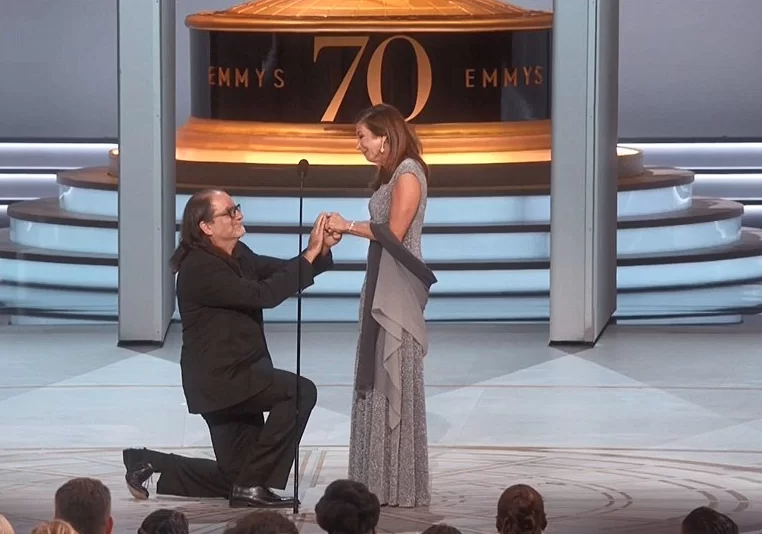 第70屆艾美獎今日香港時間早上舉行,57歲的Glenn Weiss憑今屆奧斯卡頒獎典禮贏得「特別綜藝節目最佳導演獎」,他上台發表得獎感言時,首先表示自己的母親在兩周前離世,當下心情悲喜交集,然後話鋒一轉,突然向台下的女友Jan Svendsen問道:「你知道為什麼我不想叫你女朋友嗎?因為我想叫你做我的老婆。」這句超霸氣的突擊求婚,讓Jan非常驚訝,全場人見狀忍不住起立拍掌呼歡,不斷起哄要Jan上台。
