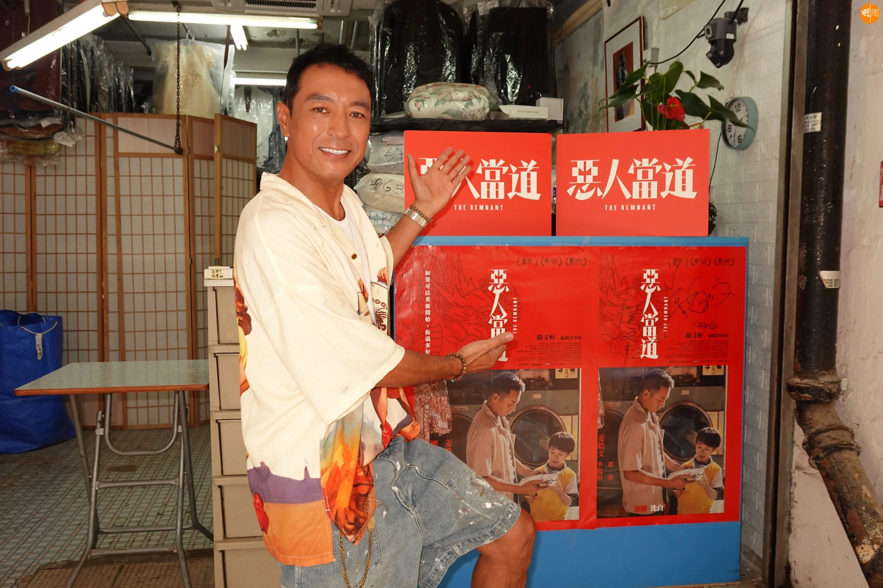 姜皓文(黑哥)為宣傳9月上映的新片《惡人當道》,今日(28日)重操在戲中飾演洗衣店老闆故業,坐鎮洗衣店當半日店長,並和戲中小演員蘇天樂及導演關文軒,在洗衣店走一圈,讓大家見識一下洗衣店的運作。黑哥表示戲中飾演一位過氣江湖大佬,出獄後為自己洗白從事洗衣店工作,退隱江湖,戲中多場主景,都是以洗衣店為主。黑哥說:「舊式嘅洗衣店已經買少見少,所以也需要保育一下這種民生的文化,加上電影很多故事都是在洗衣店發生,所以特別有感情。」
