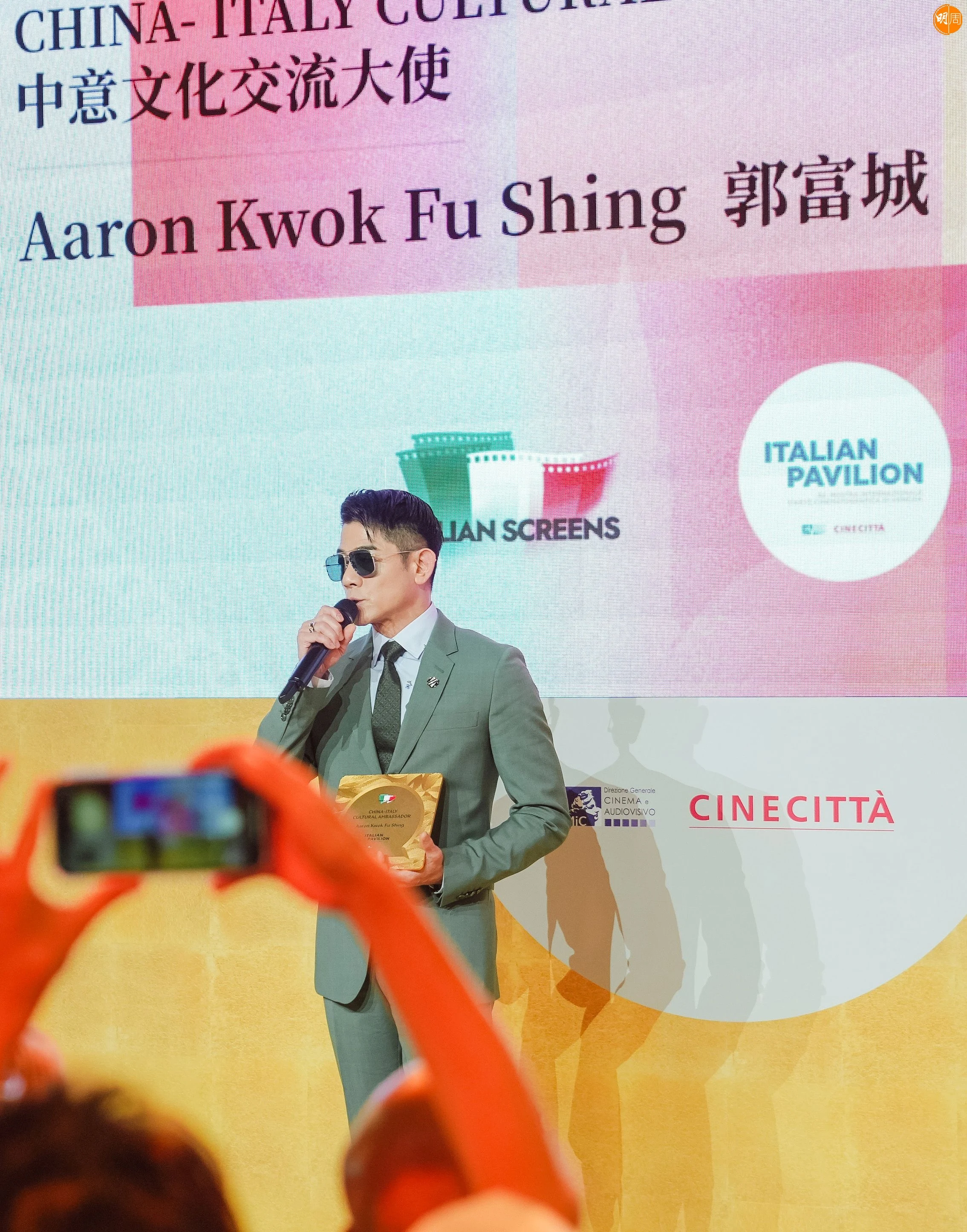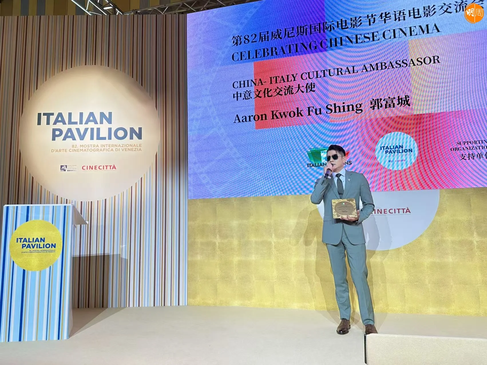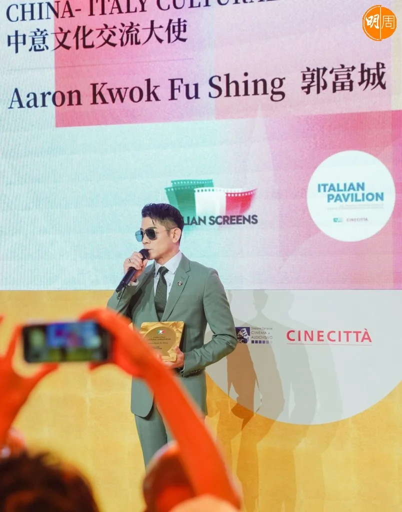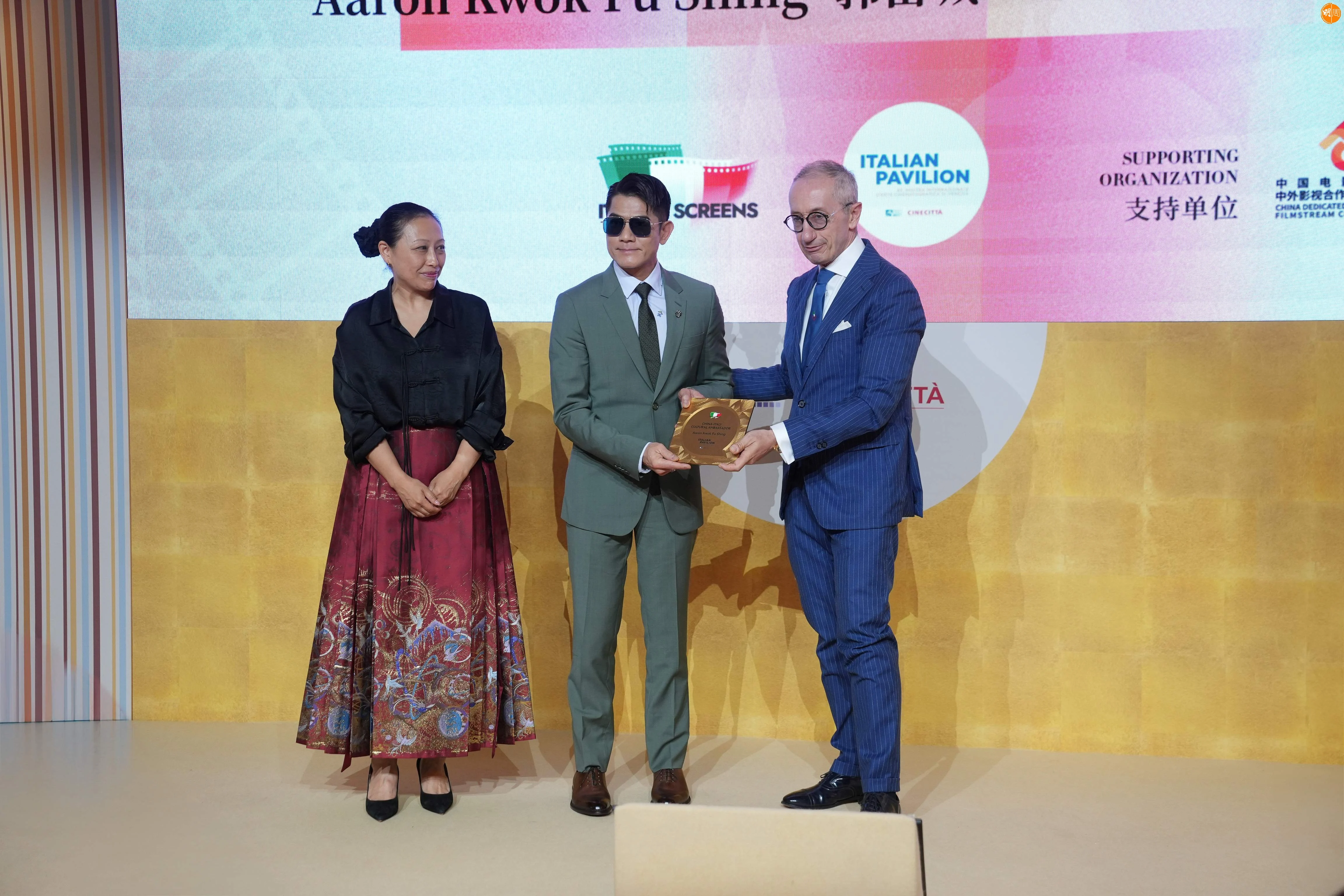 「第82屆威尼斯國際電影節」近日在意大利水都舉行,本屆電影節適逢中意建交55周年,特別增設「華語電影交流會」單元。郭富城被正式授予首屆「中意文化交流大使」稱號。這一榮譽由羅馬電影城國際部部長Roberto先生頒授,以表彰城城在電影藝術領域的傑出成就及推動中意文化交流的貢獻。他在接受委任時表示:「非常榮幸獲得這份認可,我將更加努力推動華語電影與國際間的多元合作,把更多優秀作品帶到像威尼斯這樣的國際舞台。」