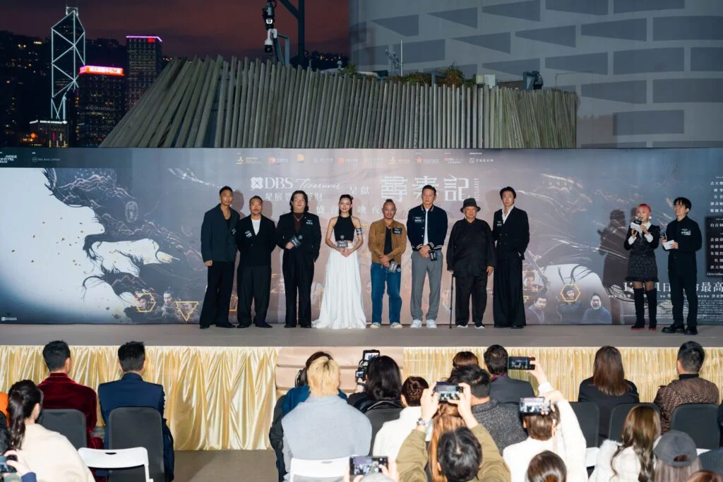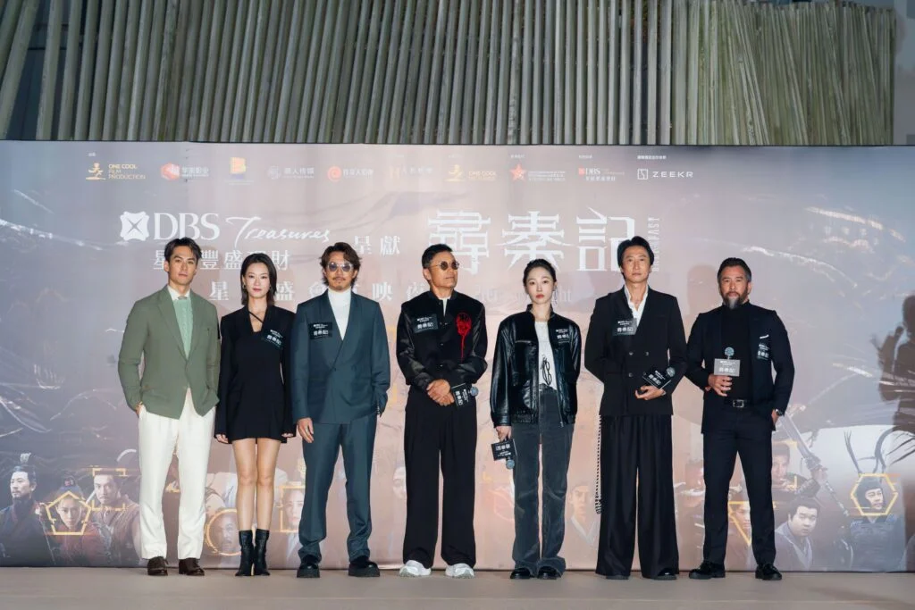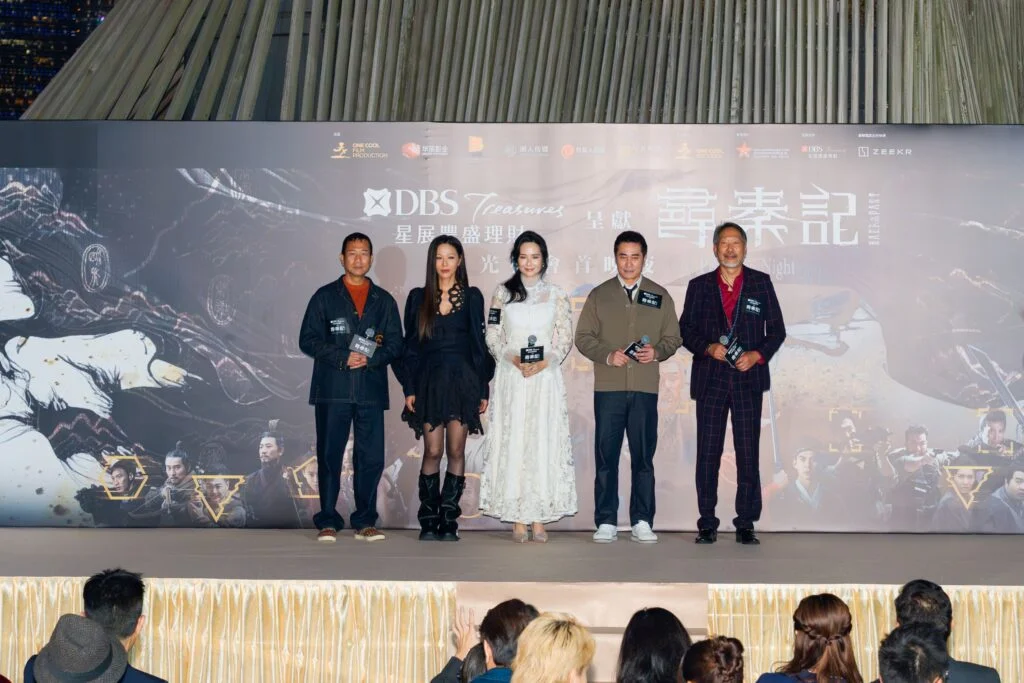 昨晚一眾演員陸續上台講感受,壓軸登場古天樂跟大家打招呼:「Good evening!由構思到開拍至上映,一直很期待。多謝黃易先生(原著作家),因為他才有《尋秦記》。另外,還多謝智叔(廖啟智),有他才有古博士。」