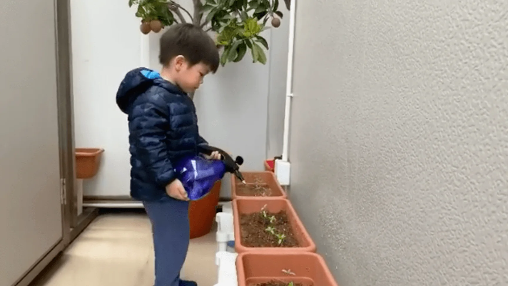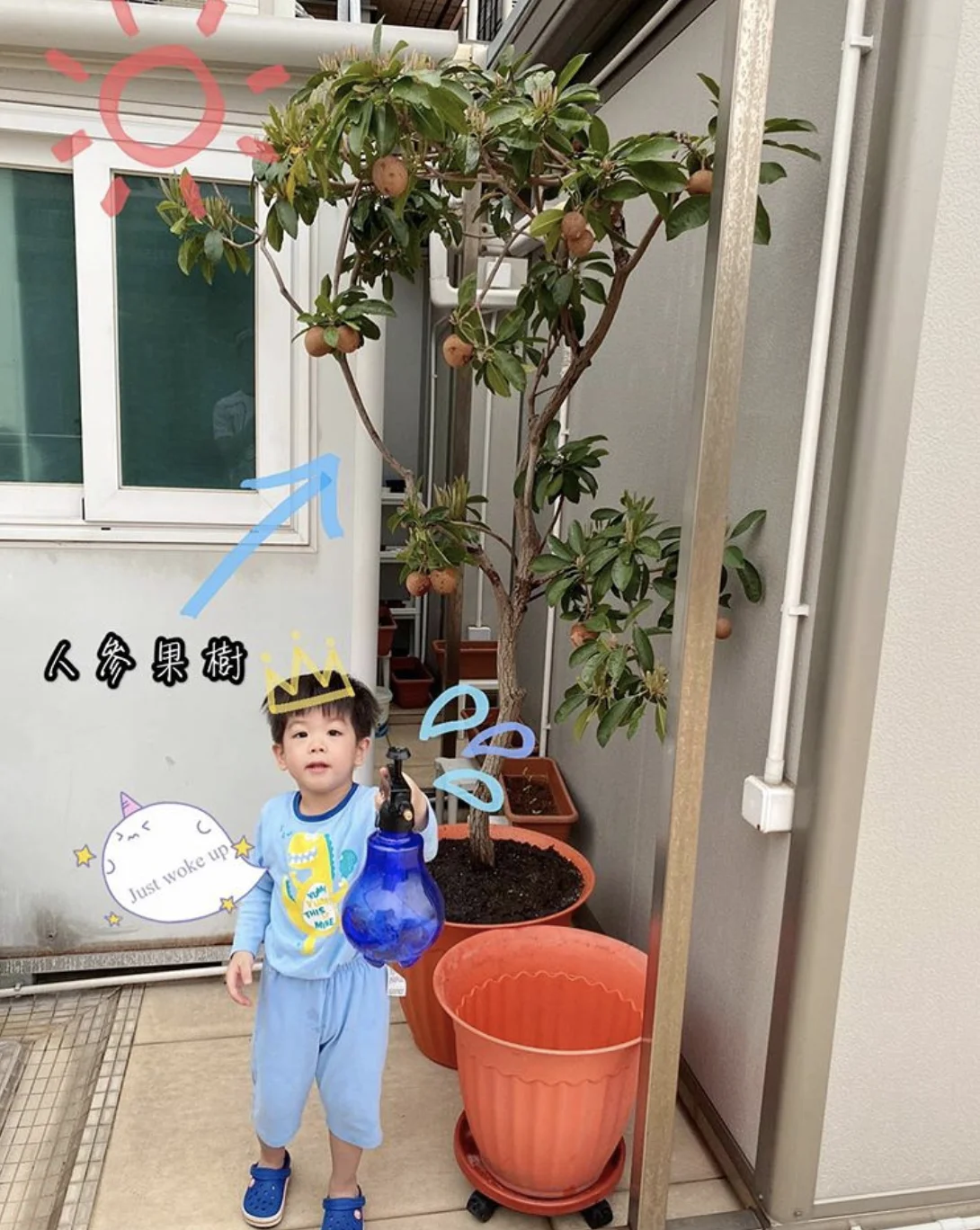 諾懿家中種了一棵人蔘果樹,另外又種了多種植物,黎爸爸會與囝囝自然教育課,讓小春雞負責澆水,訓練他的責任感和耐性。
