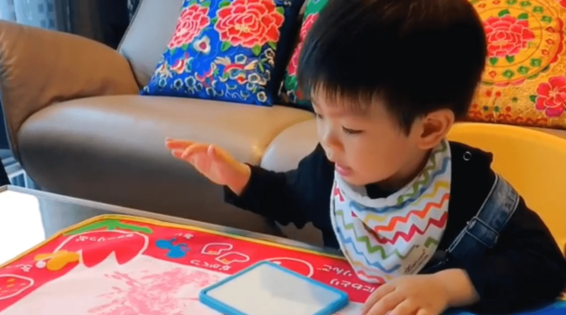 噚日,黎諾懿又同粉絲share寶貝囝囝片段。見小春雞即席揮毫,喺畫布上打手印,又霸氣地畫上線條。