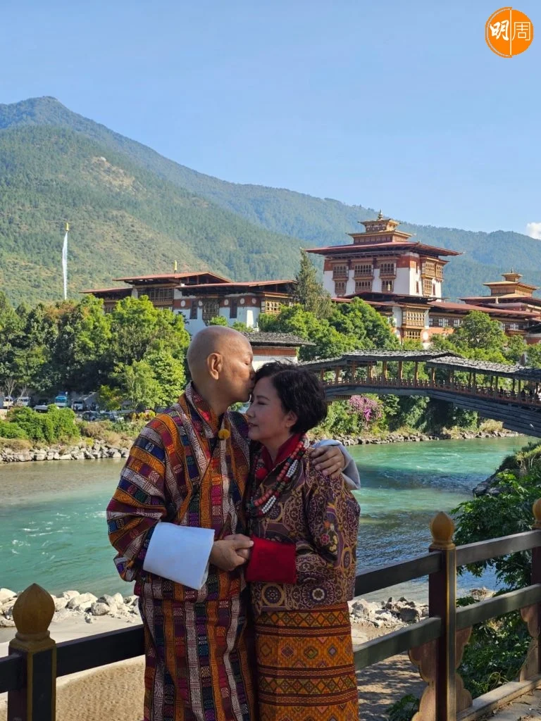 拍攝現場洋溢幸福氛圍,阿姐在開拍前細心為丈夫整理衣裝,家英哥則在拍攝後情不自禁親吻阿姐額頭,兩人不時甜蜜對望,恩愛互動令人羨慕。阿姐分享:「估唔到我哋會著上不丹傳統服裝,仲有大師祝福,又有村民同我哋跳舞慶祝,真係好難忘。」